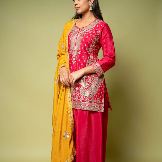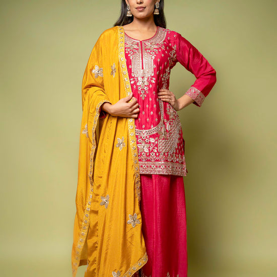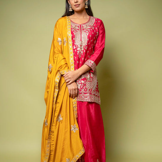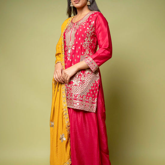Panna Rani Chinon Readymade Sharara Set With Chinon Dupatta