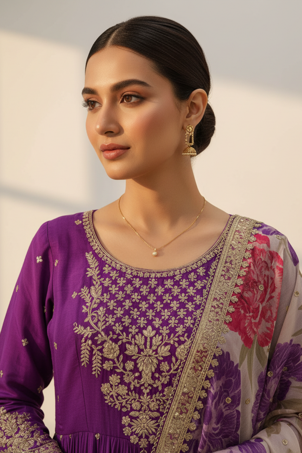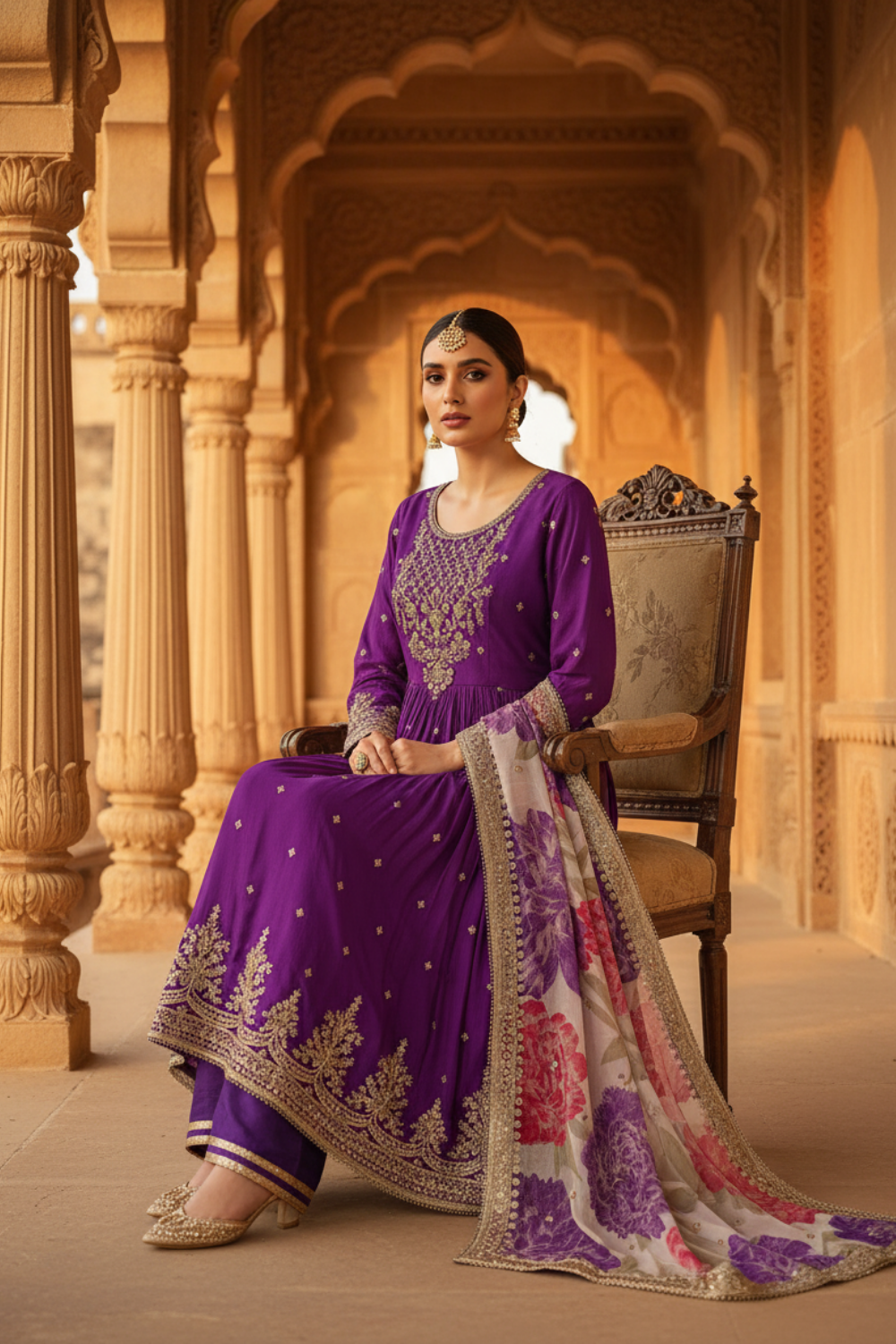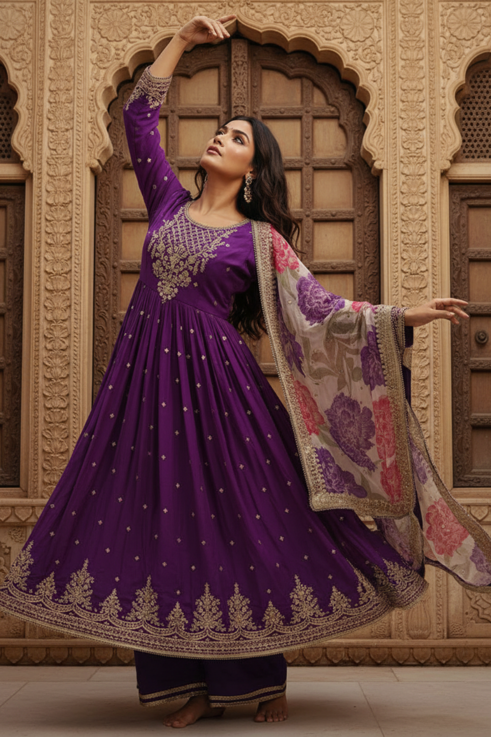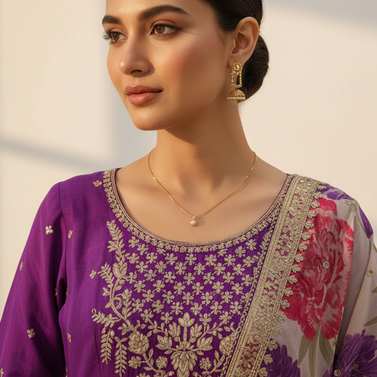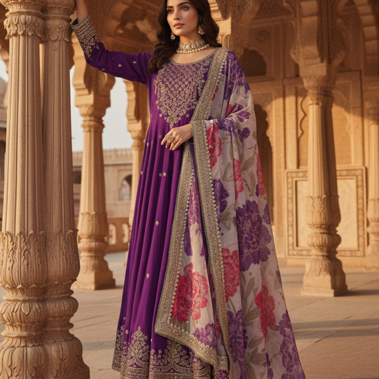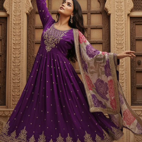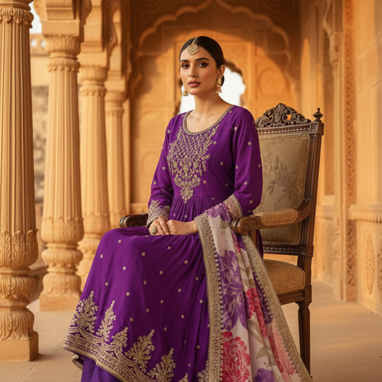 Purple Chinon Readymade Suit And Pant With Organza Dupatta – The Panna Shop