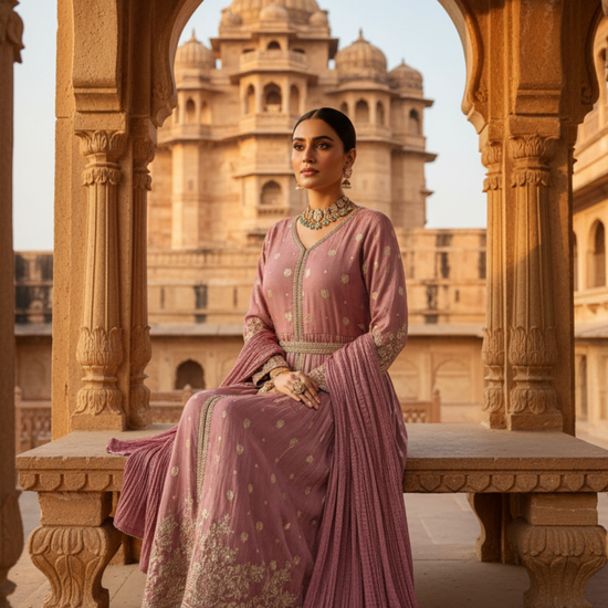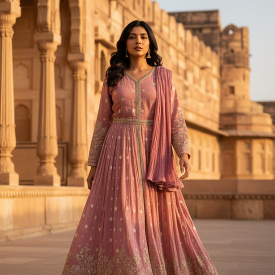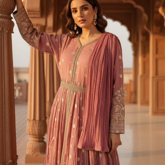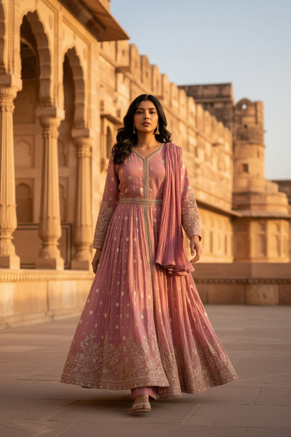 Gajari Tissue Floor Length Readymade Suit And Pant With Chinon Dupatta – The Panna Shop