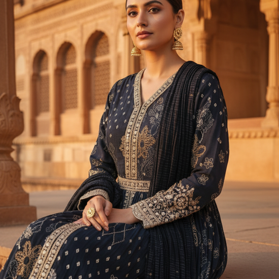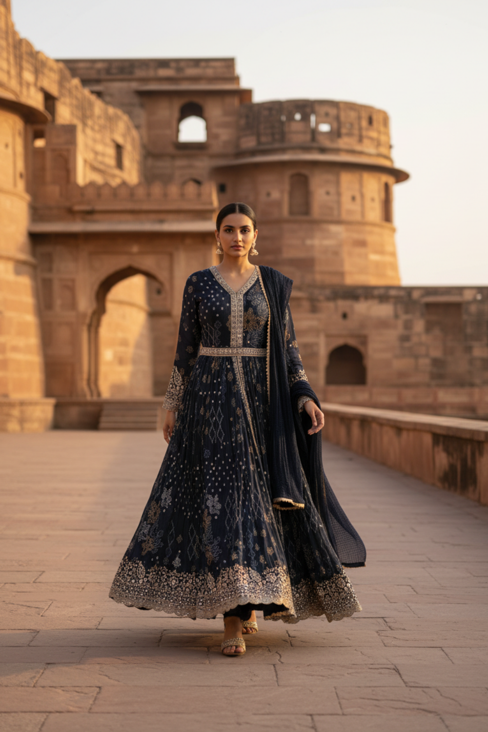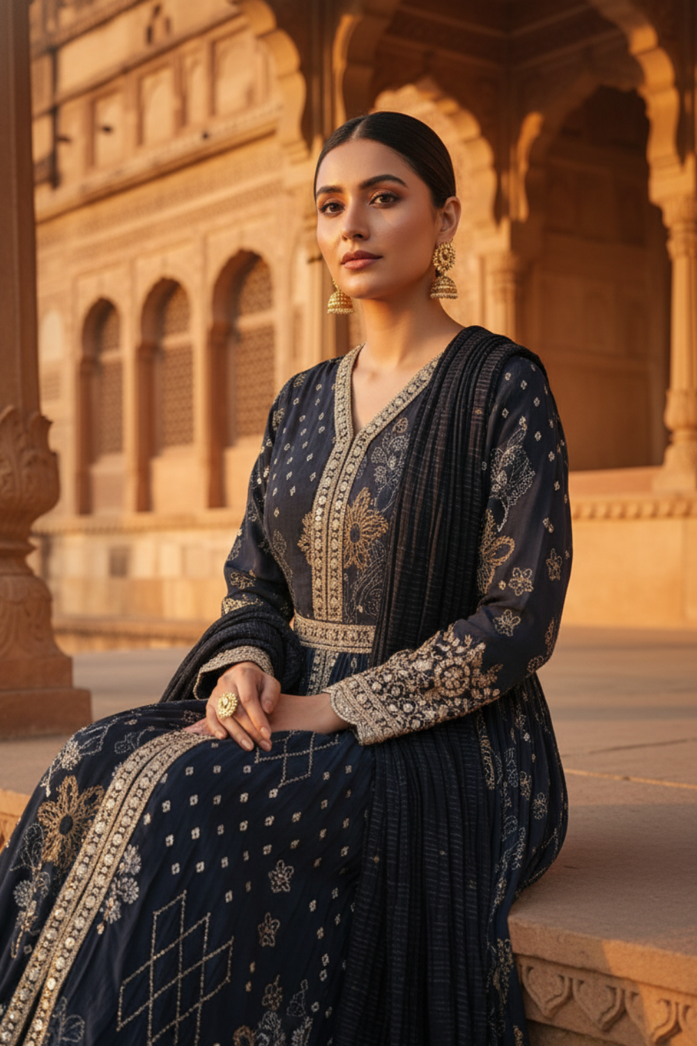 Work : Bead, Cutdana, Dabka, Mirror Sheet, Sequence & Zari Threadwork