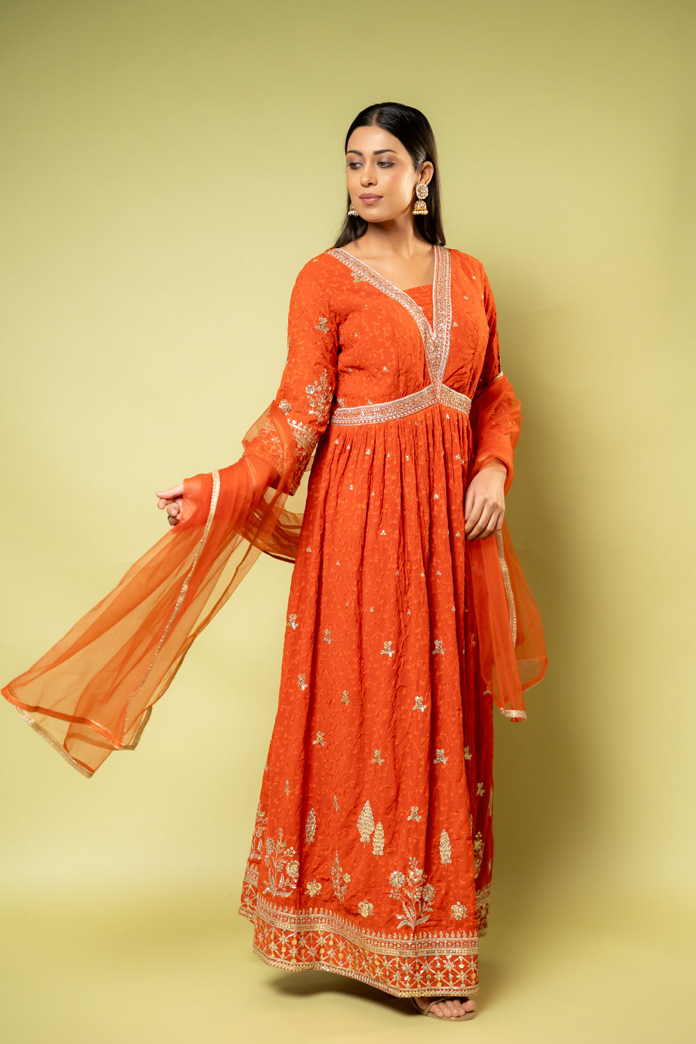 Panna Rust Georgette Floor Length Readymade Suit With Net Dupatta