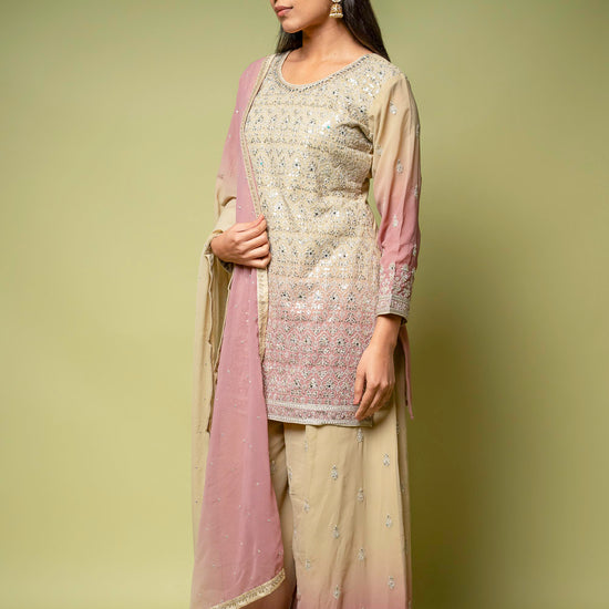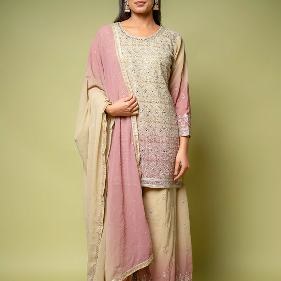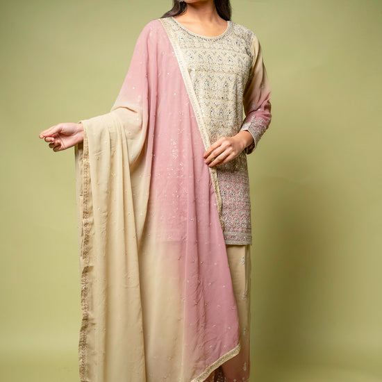 Panna Tussar Georgette Readymade Sharara Set With Georgette Dupatta