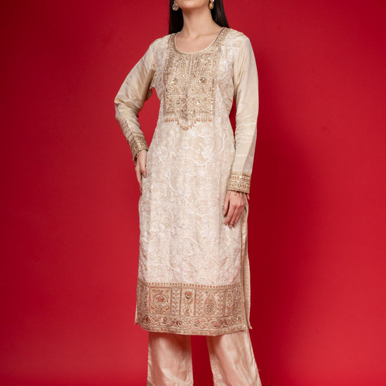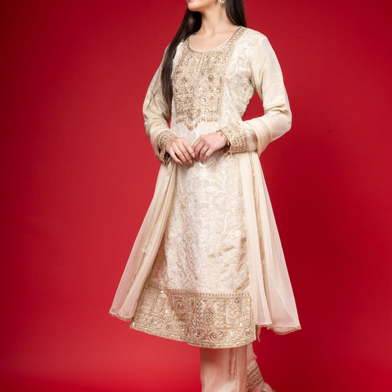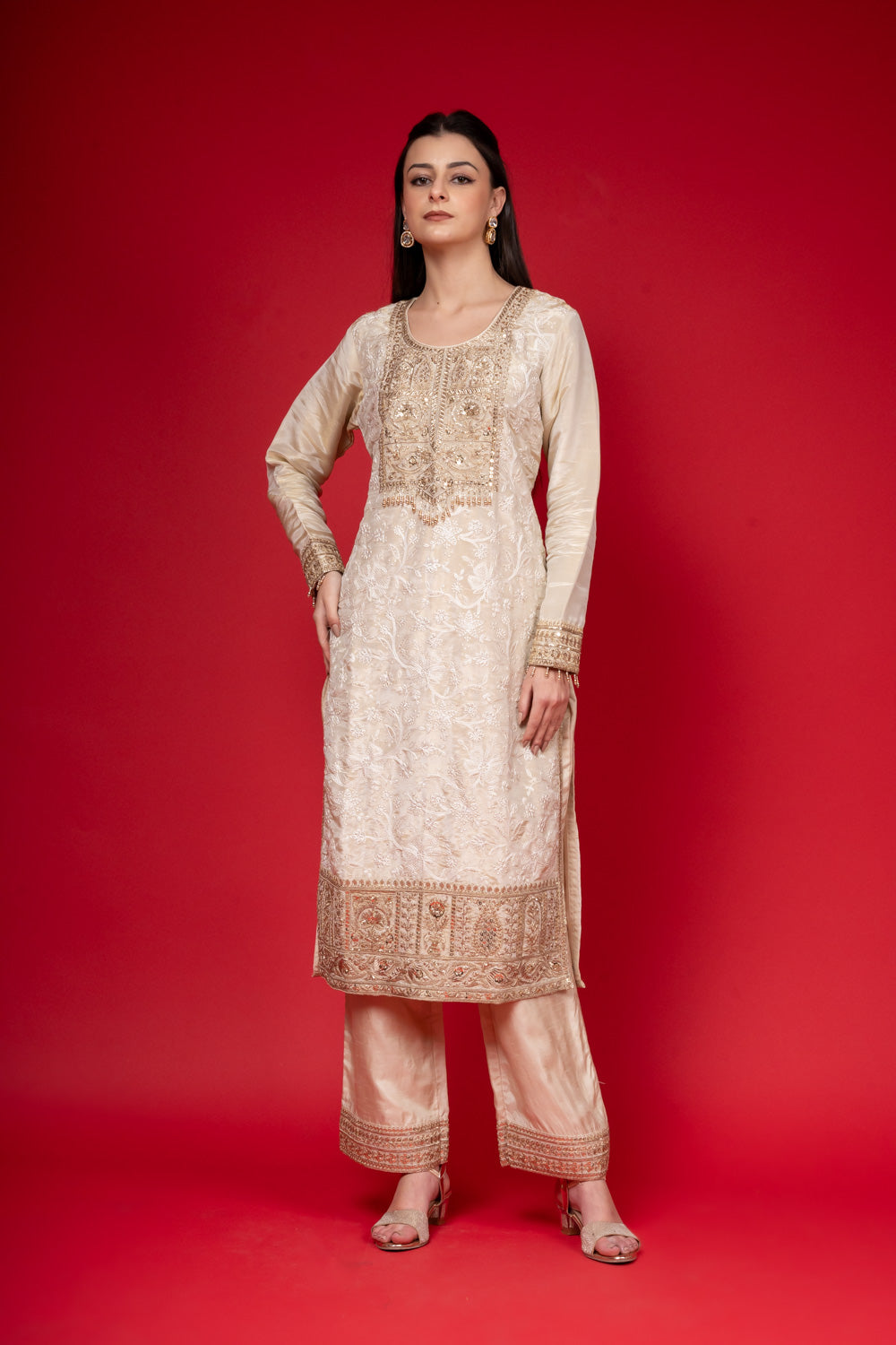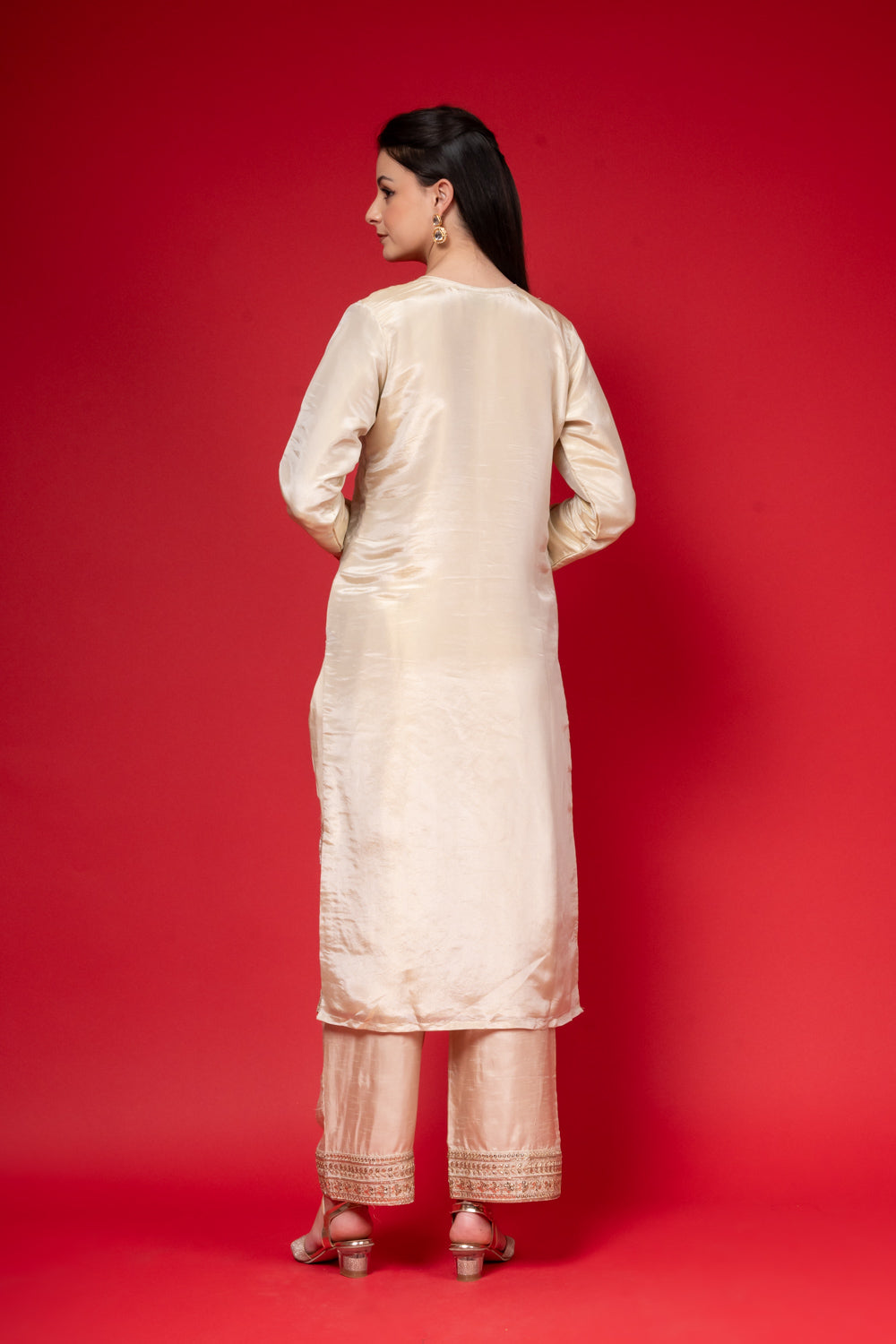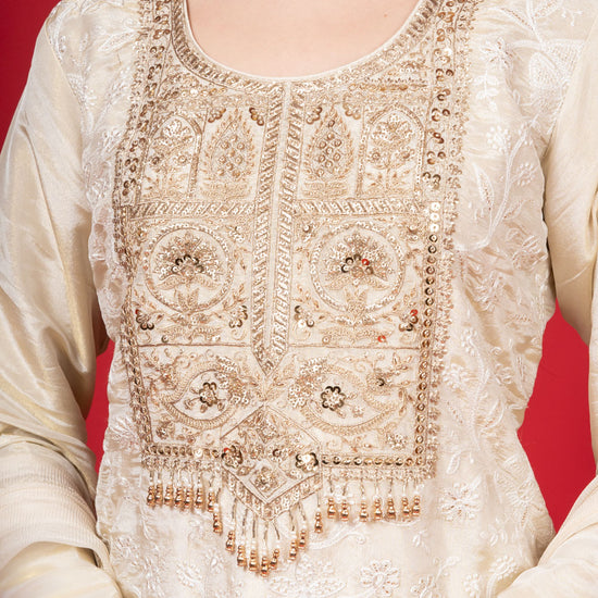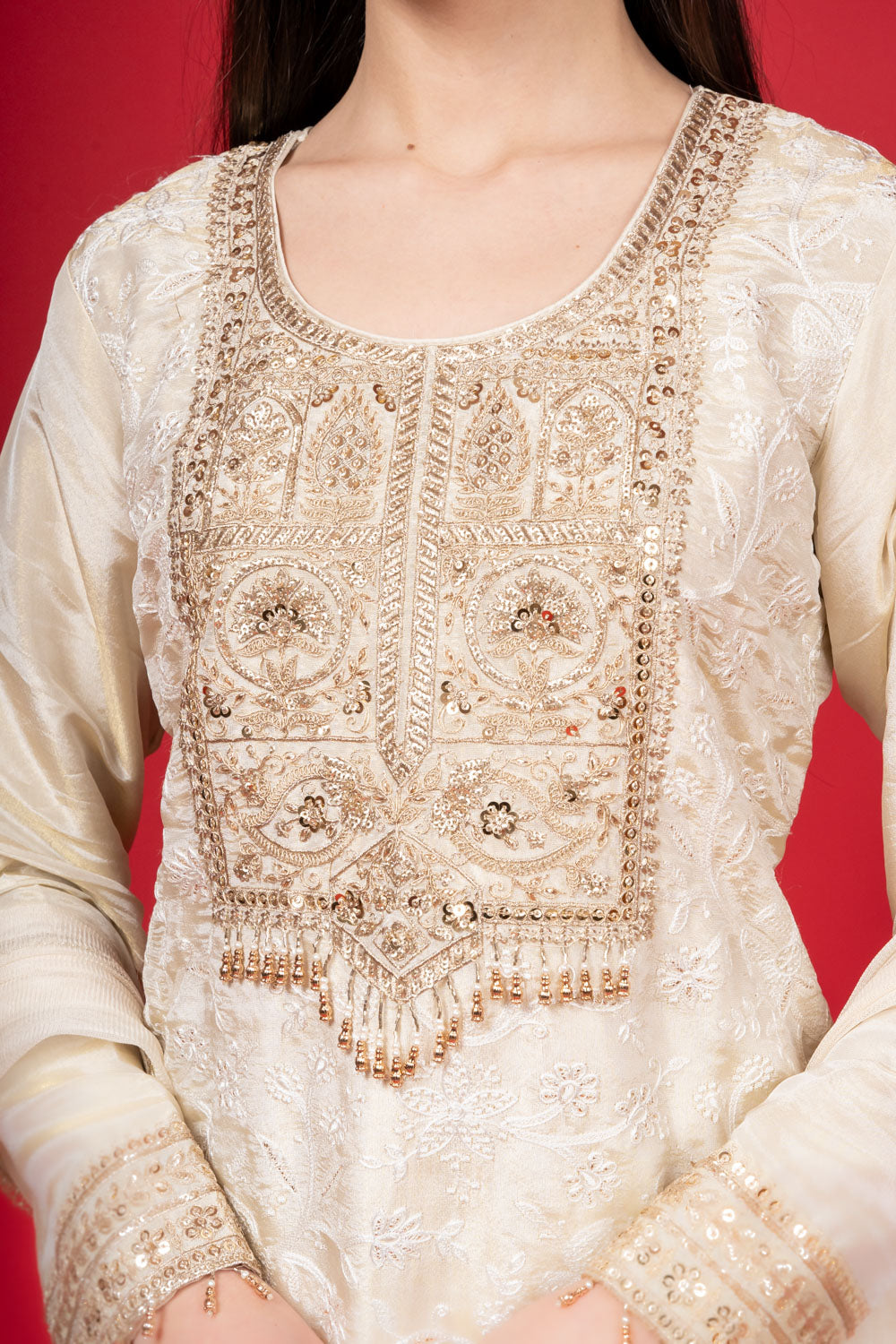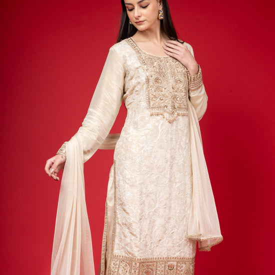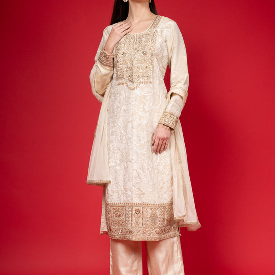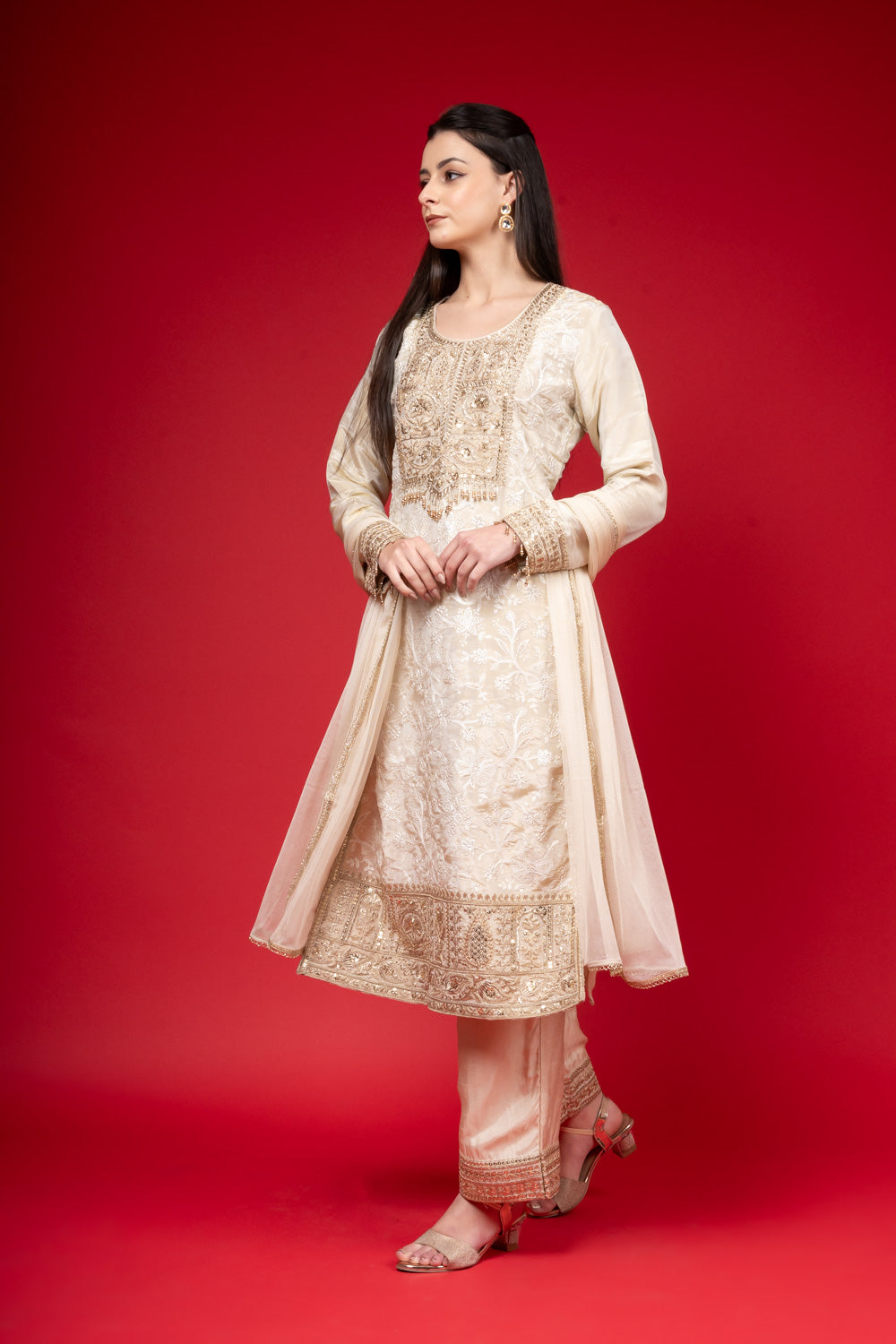 Panna Off White Tissue Readymade Suit And Pant With Net Dupatta