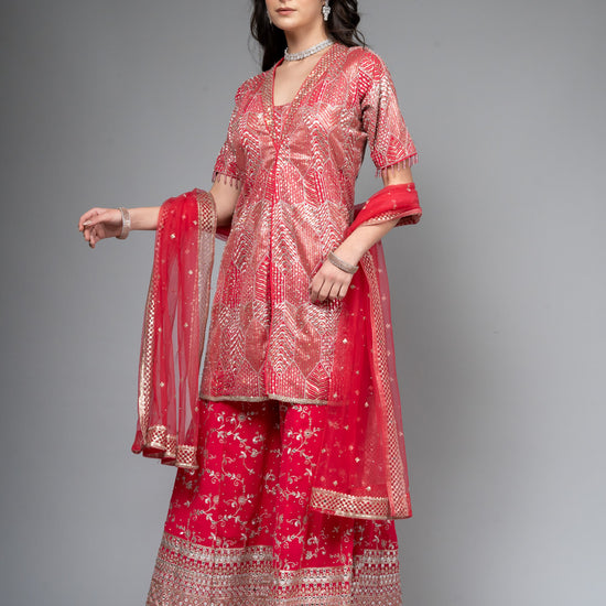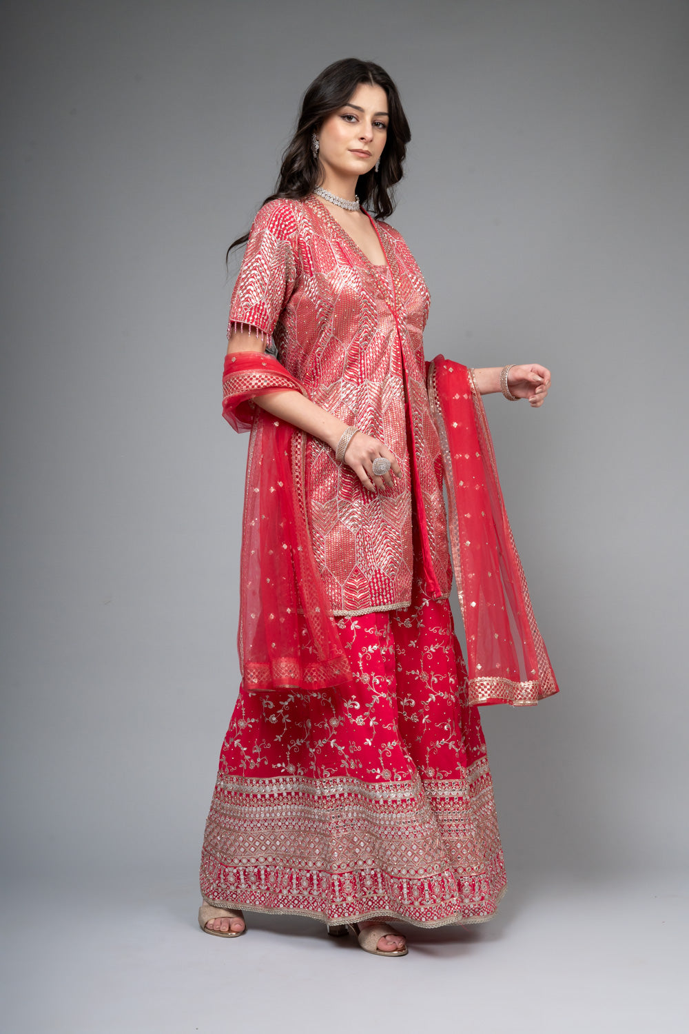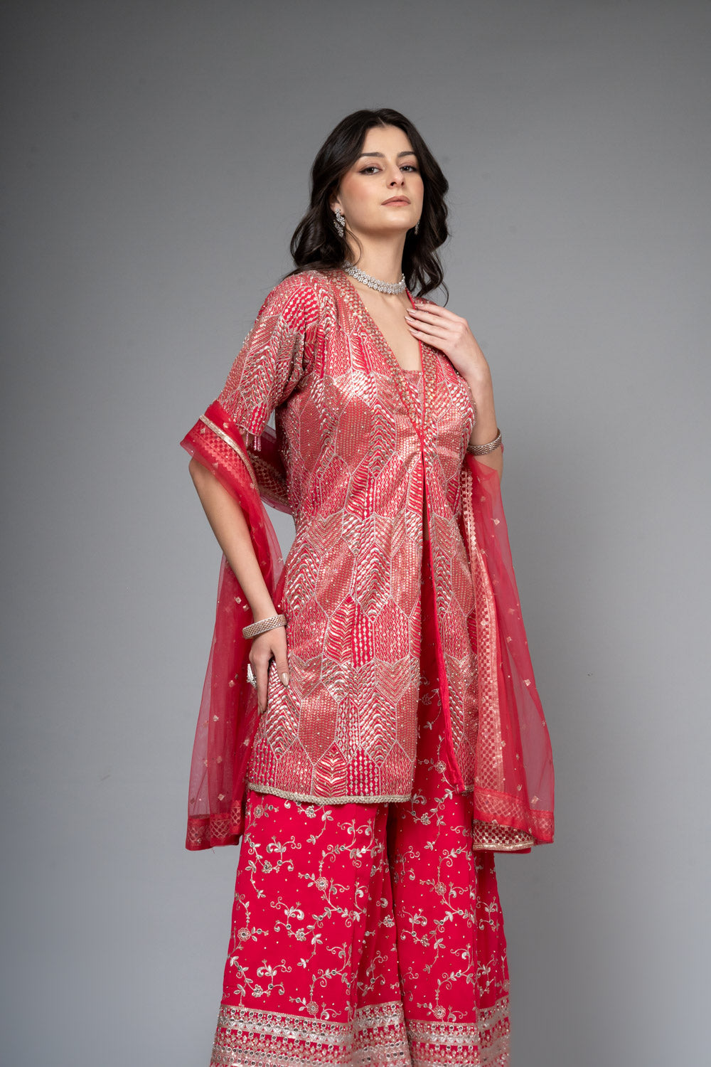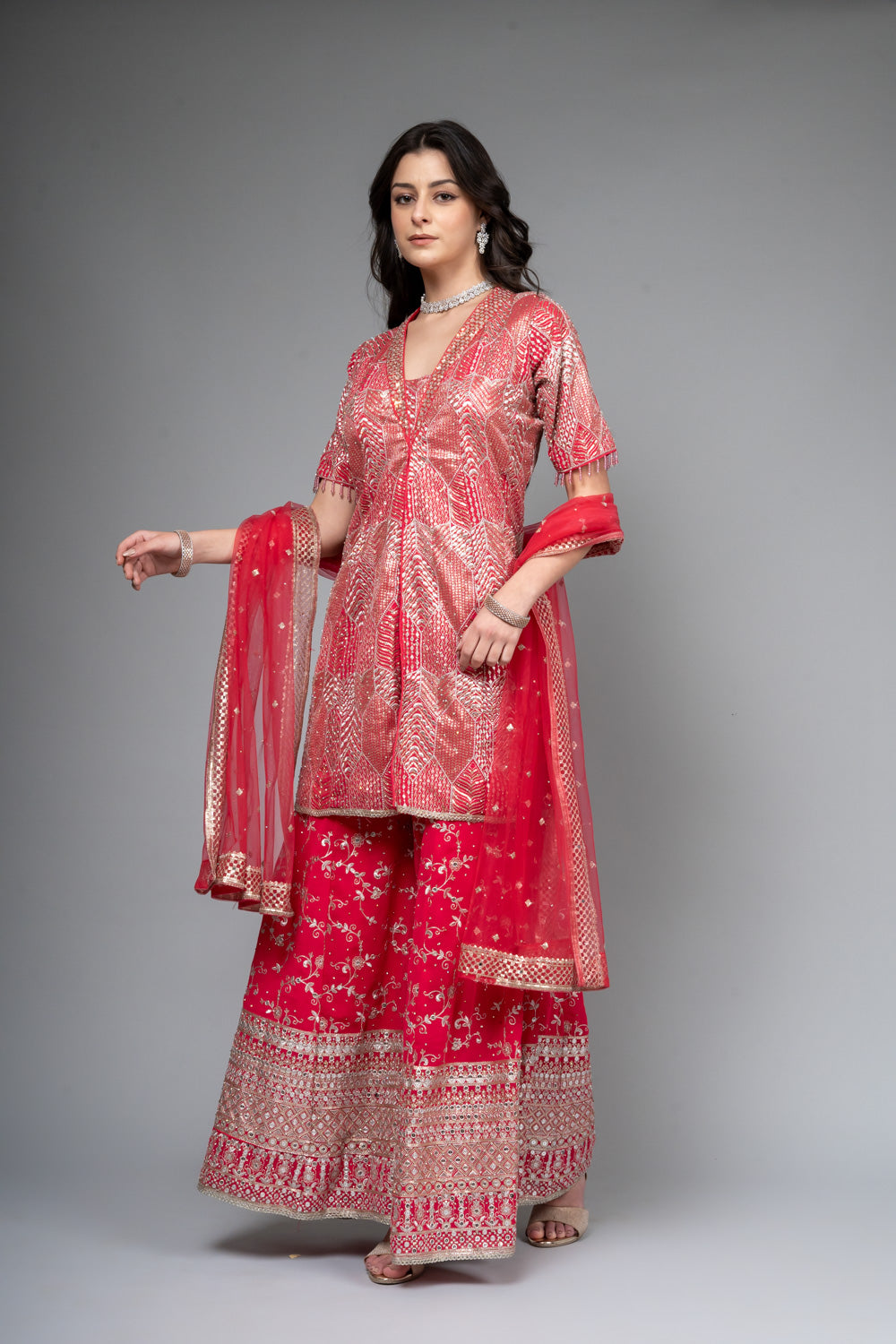 Panna Rani Georgette Readymade Sharara Set With Net Dupatta