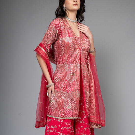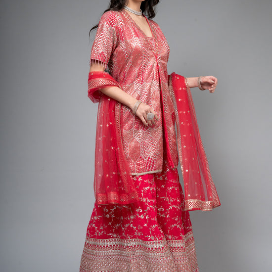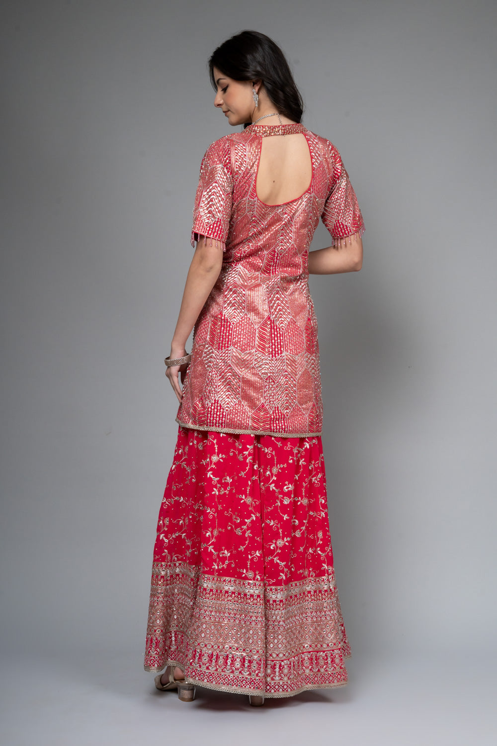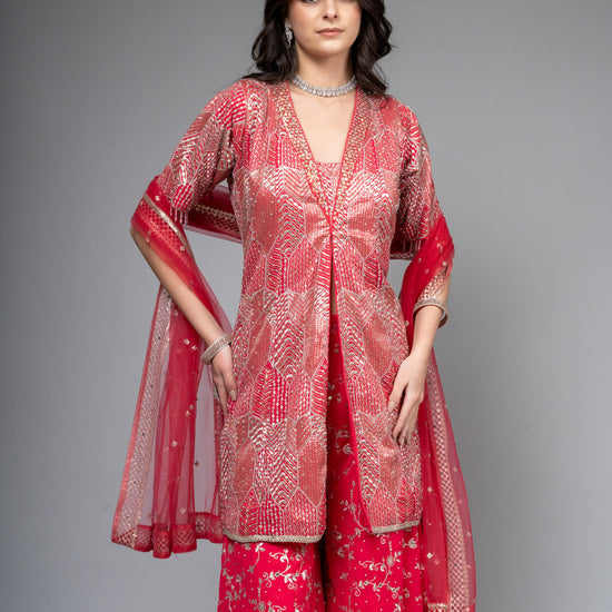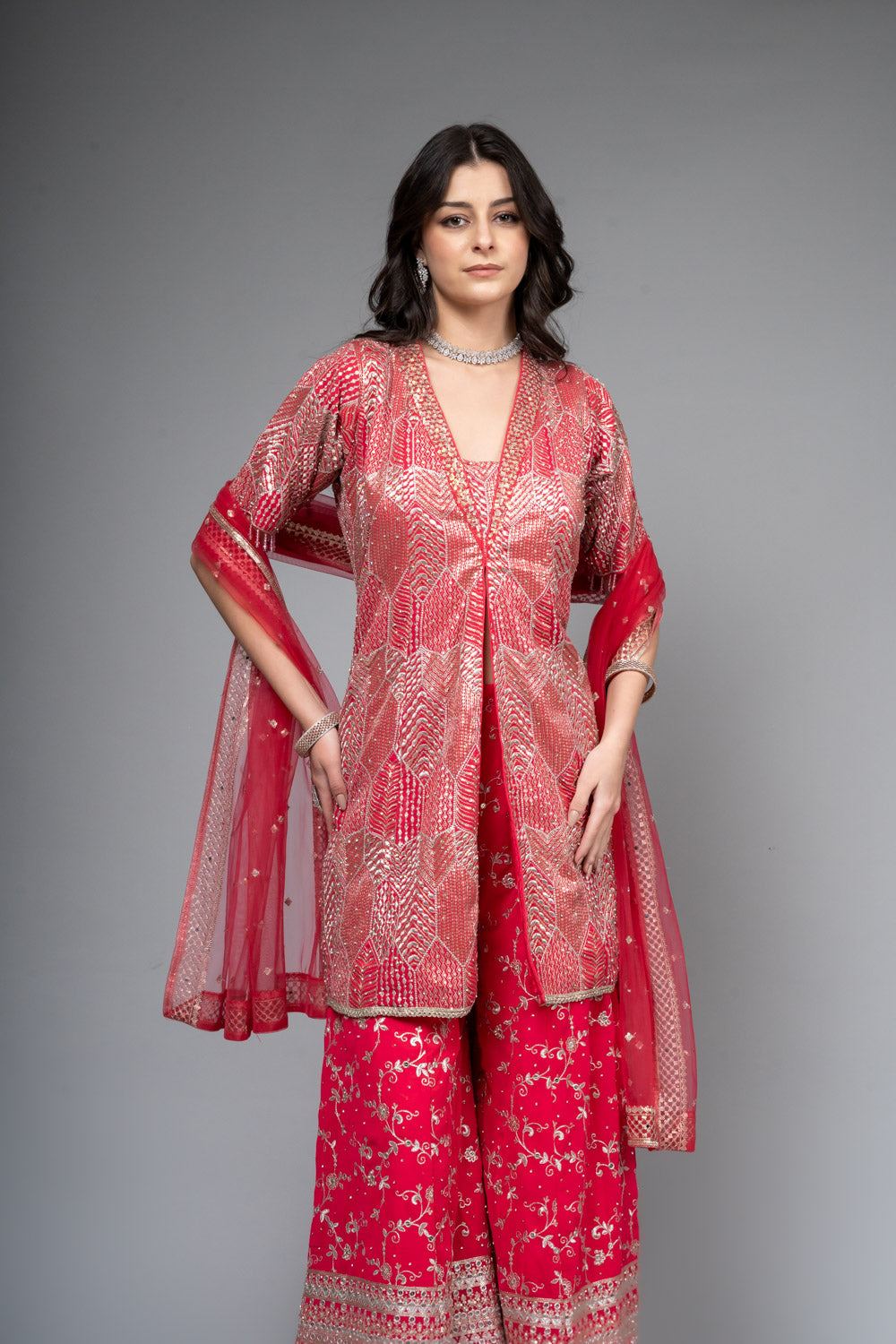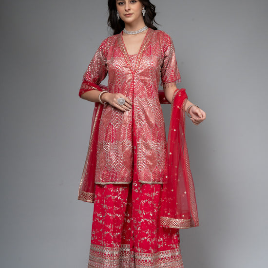 Panna Rani Georgette Readymade Sharara Set With Net Dupatta