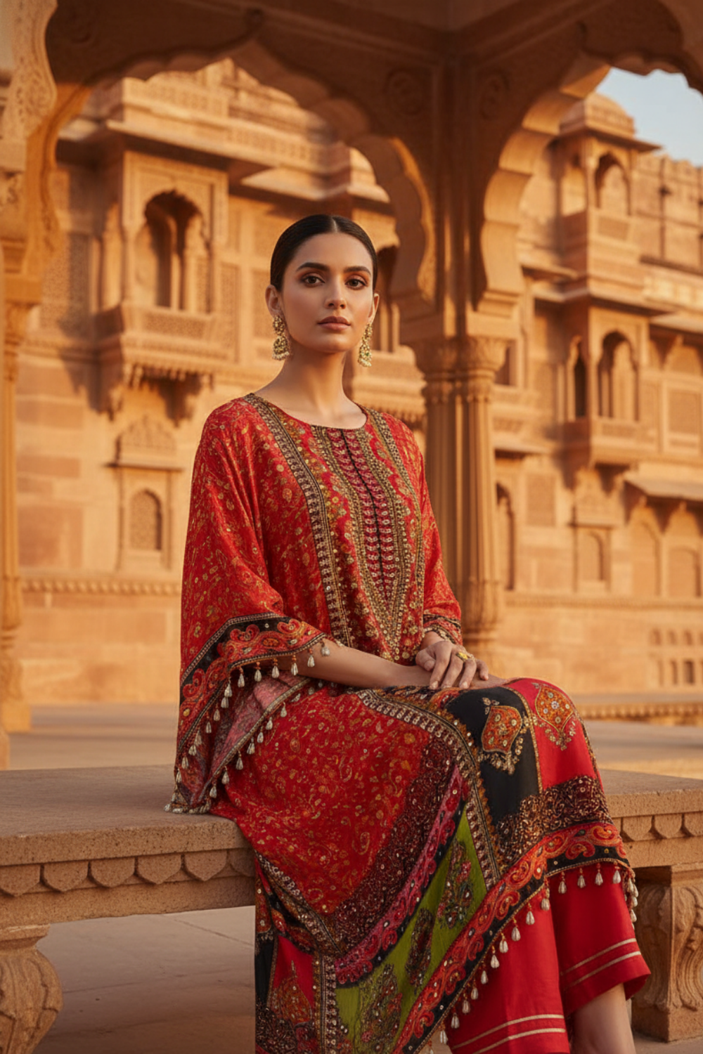 Work : Floral Print, Gotta Patti, Mirror & Sequence Work