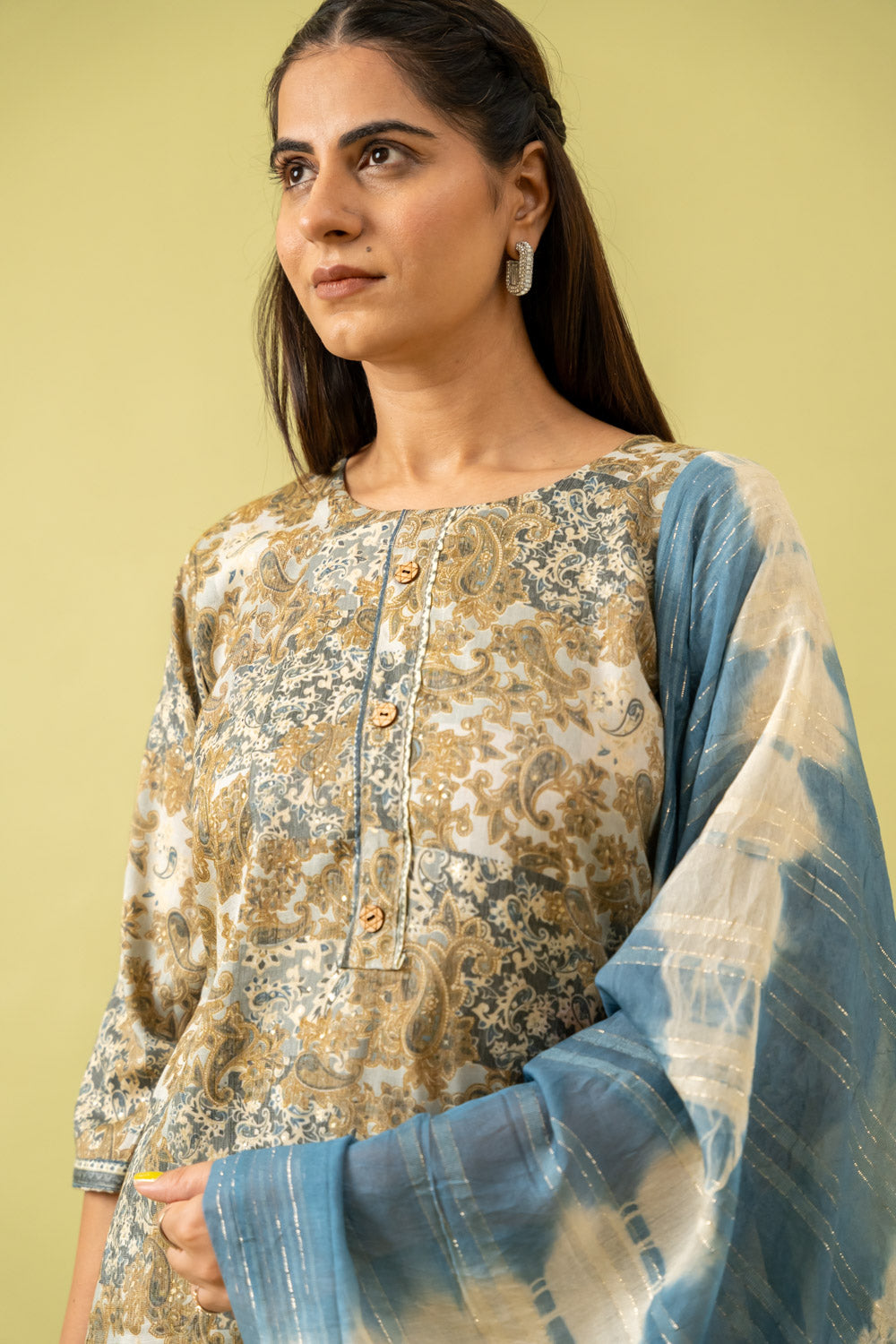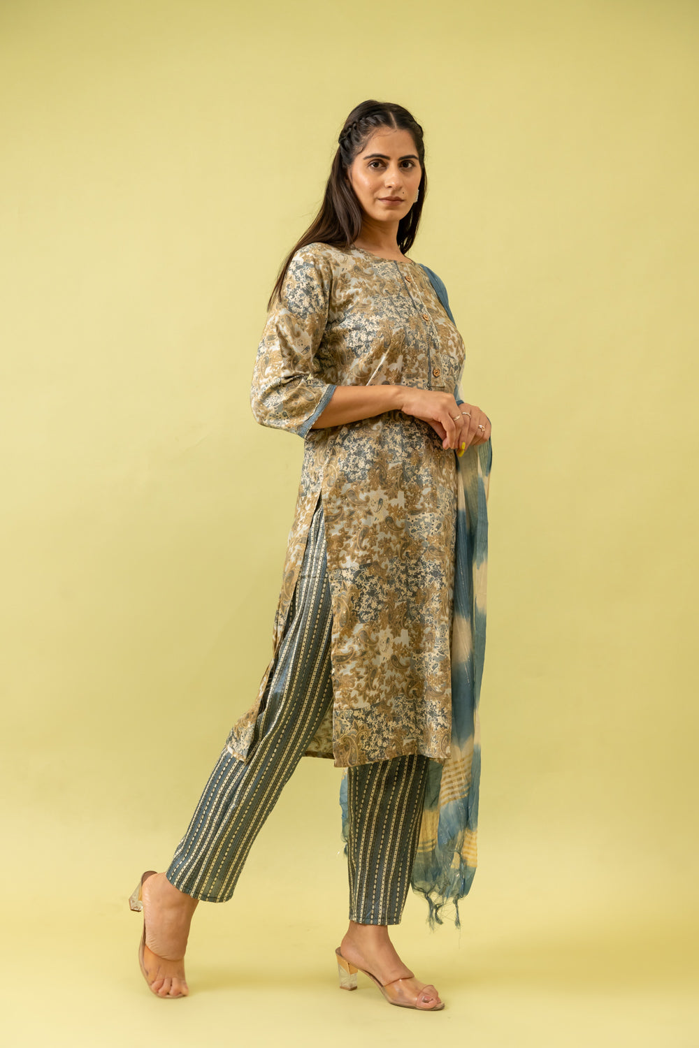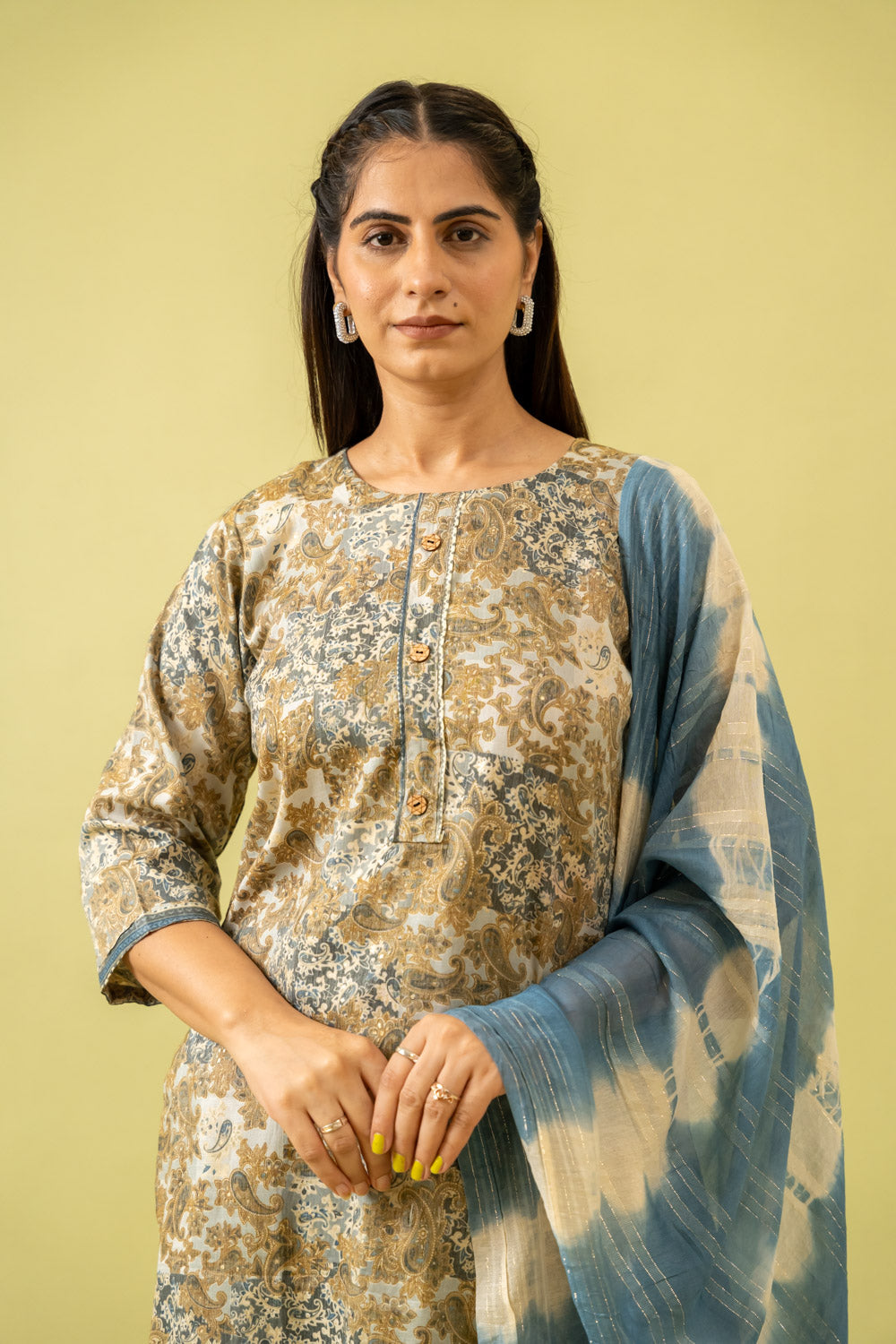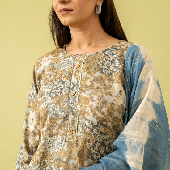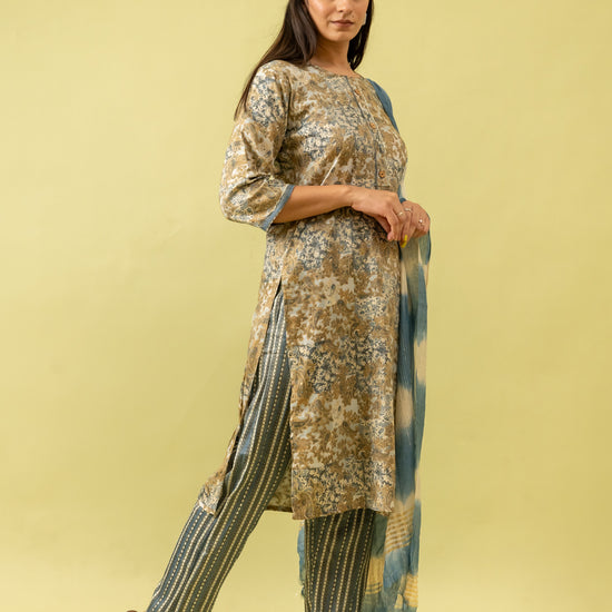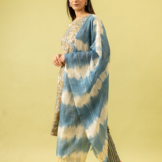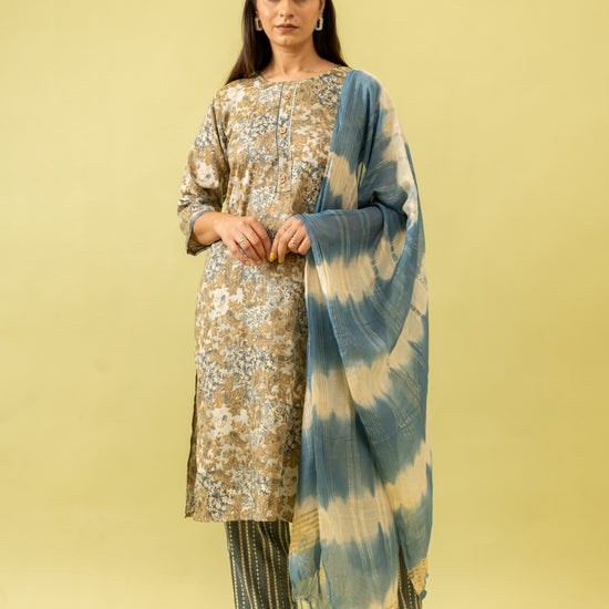 Panna Olive Cotton Readymade Suit And Pant With Cotton Dupatta