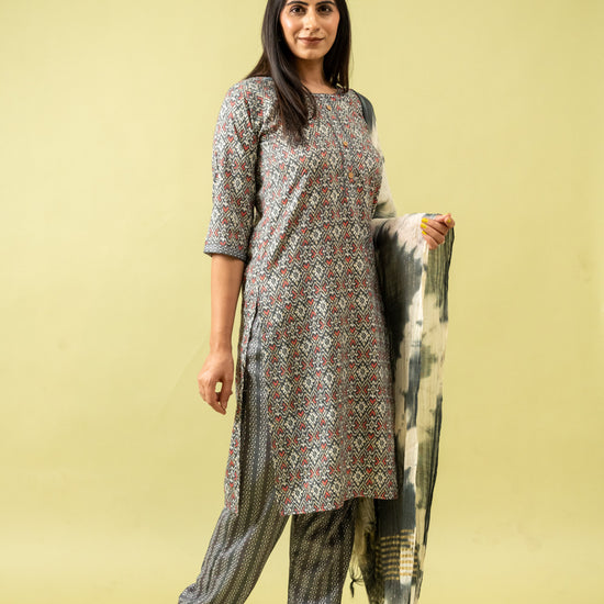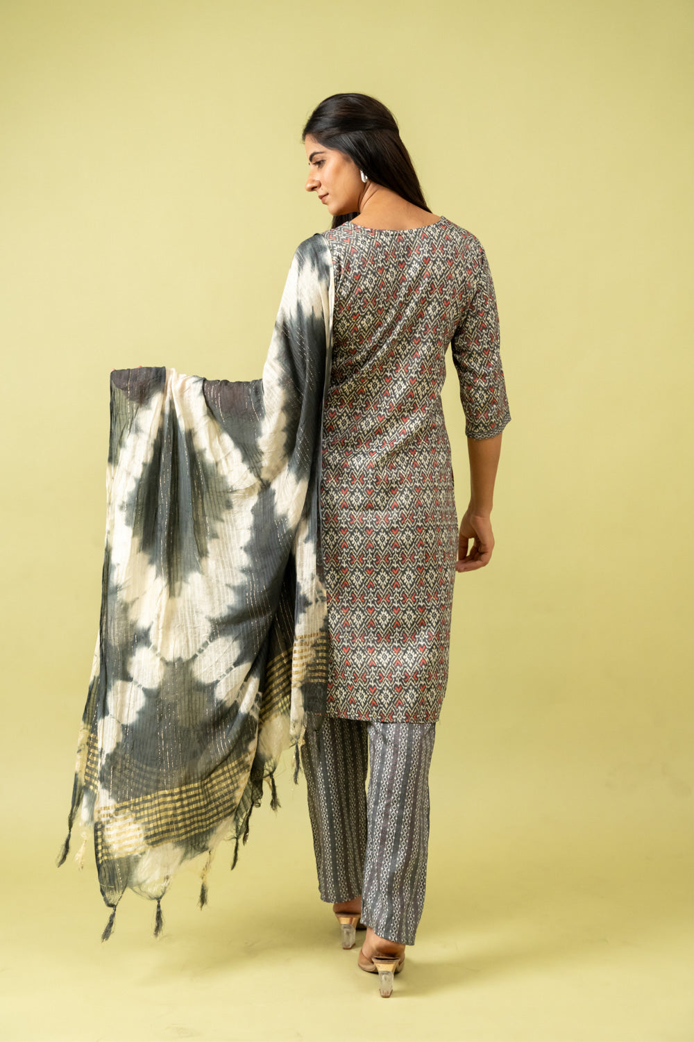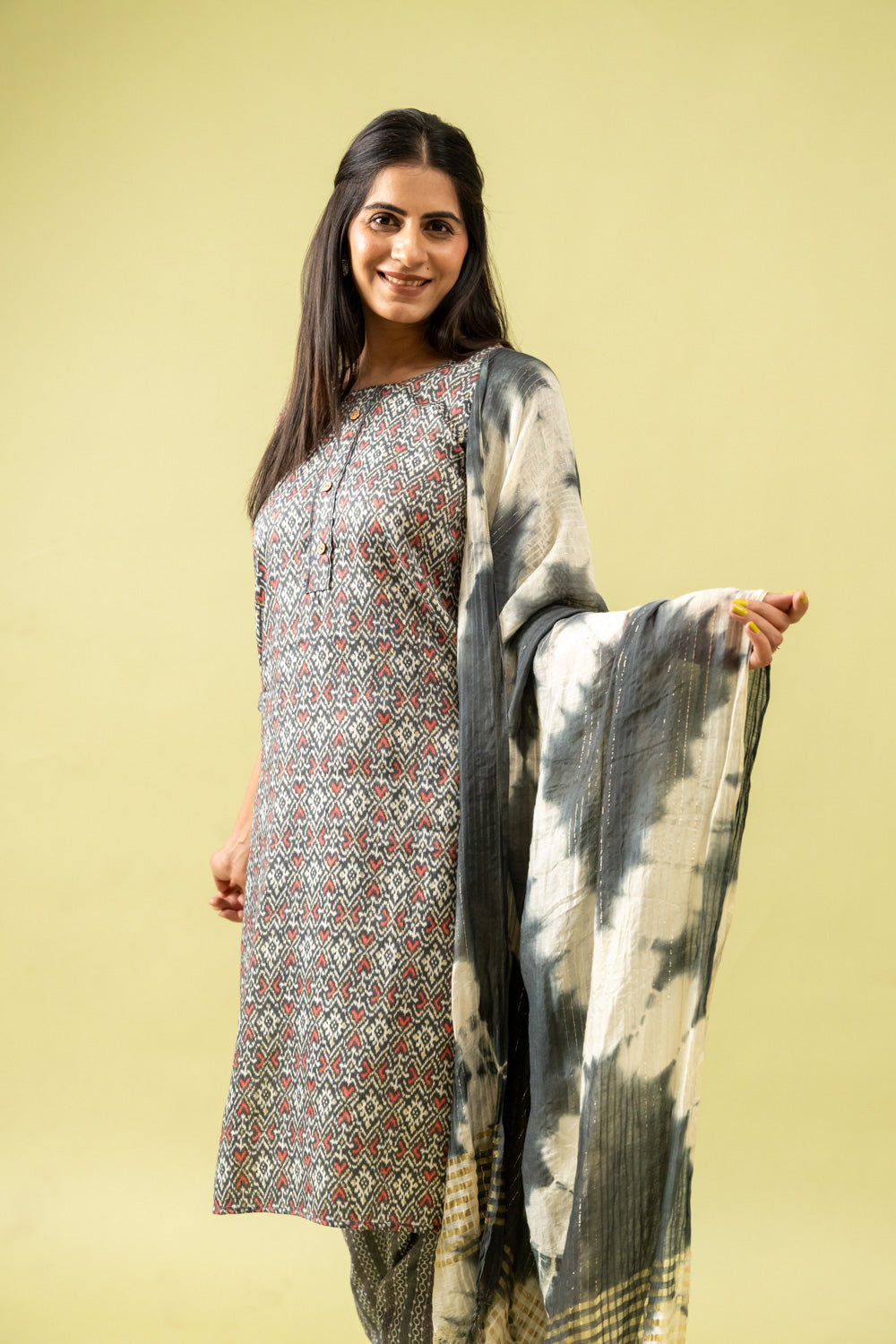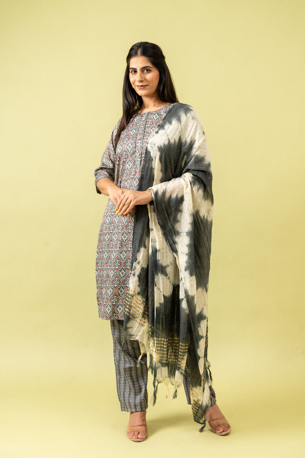 Panna Grey Cotton Readymade Suit And Pant With Cotton Dupatta