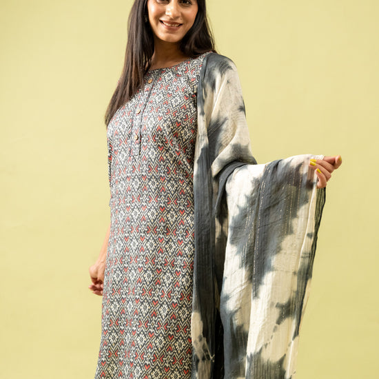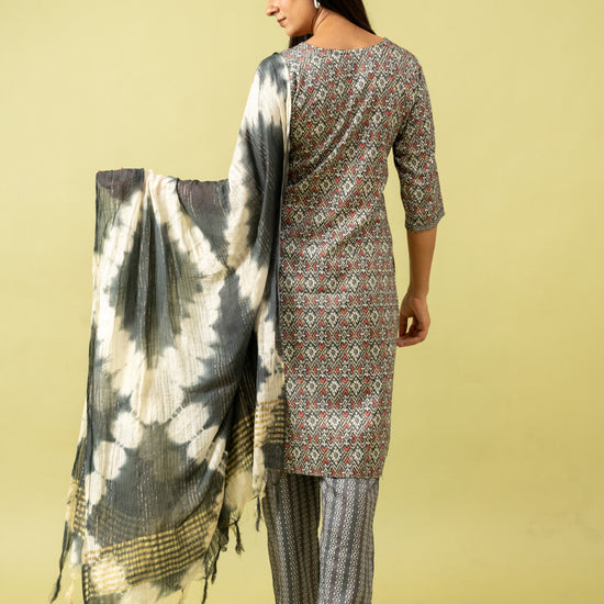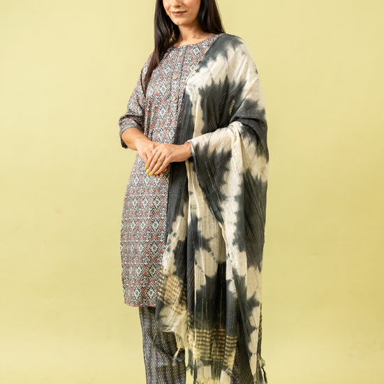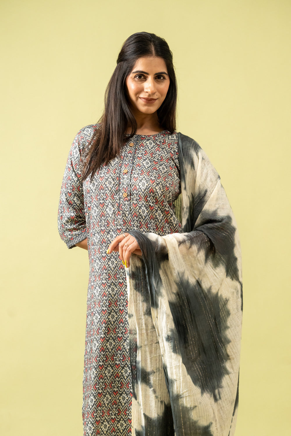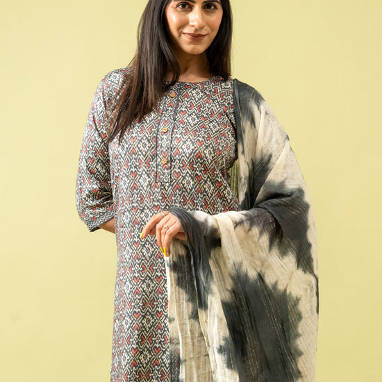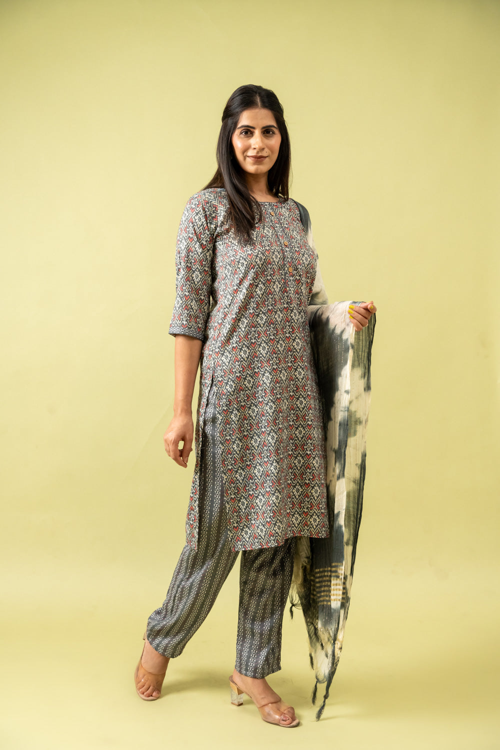 Panna Grey Cotton Readymade Suit And Pant With Cotton Dupatta
