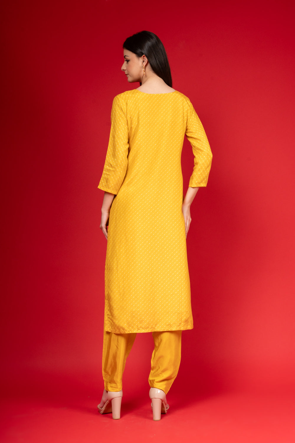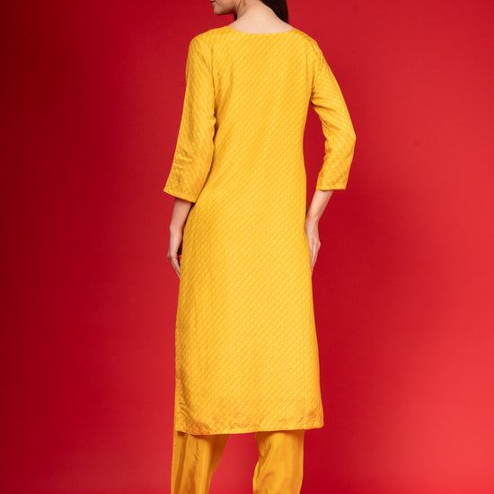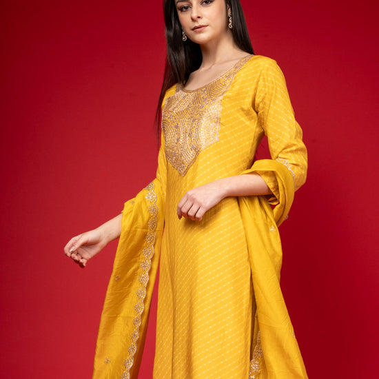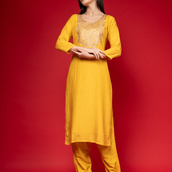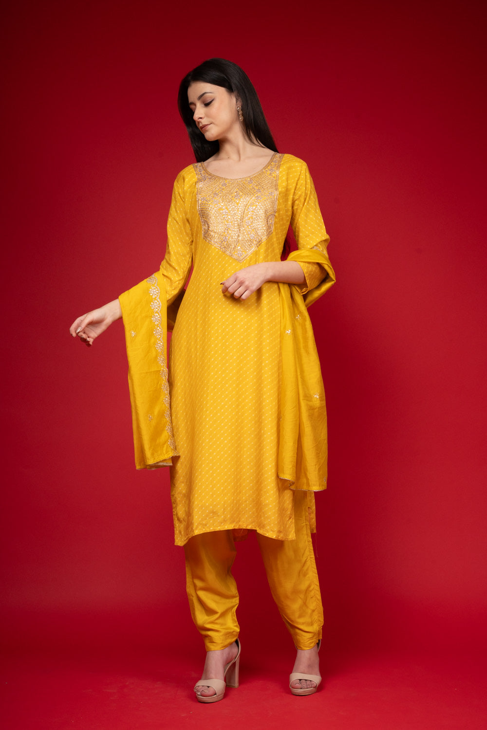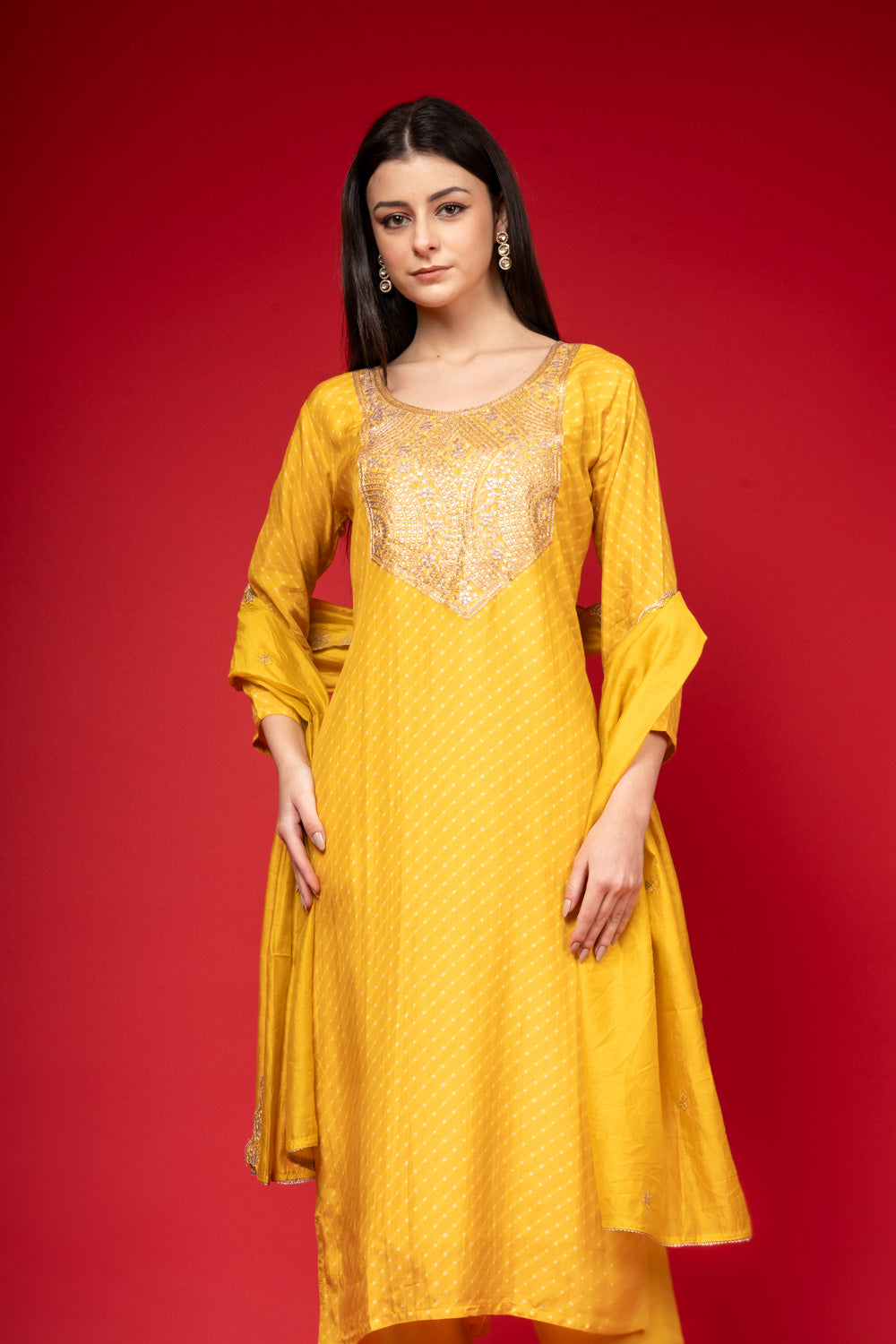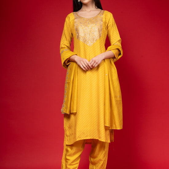 Panna Mango Gold Cotton Readymade Suit And Pant With Cotton Dupatta