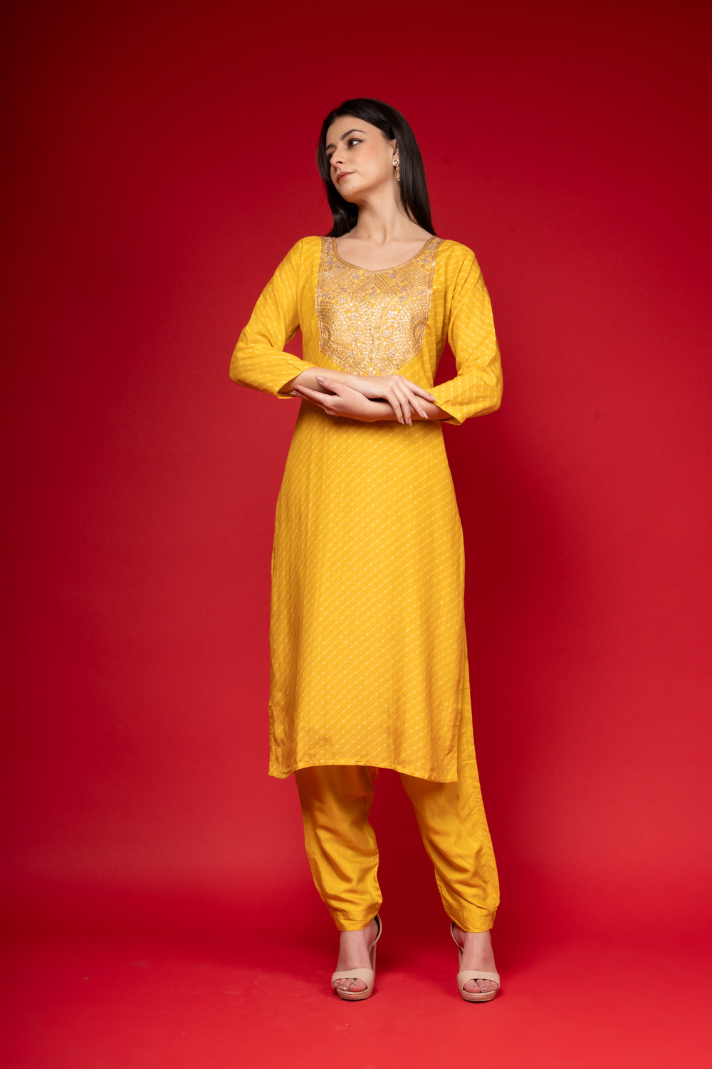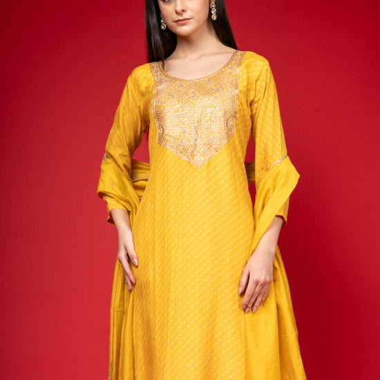 Crafted from Cotton, this ready-made suit features Bandhini Print, Sequence & Zari Thread Work and is perfect for Formal Occasion. Its Lightweight design ensures comfort and style. The Color Variations in this design add versatility to your wardrobe. Follow Dry Wash / Dry Clean.