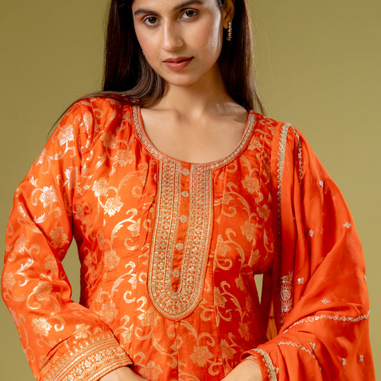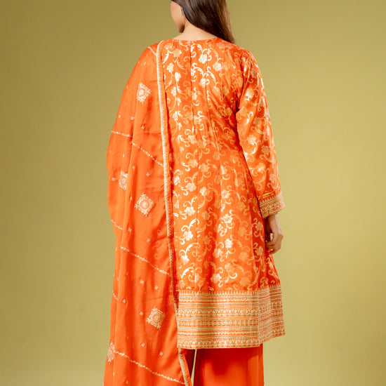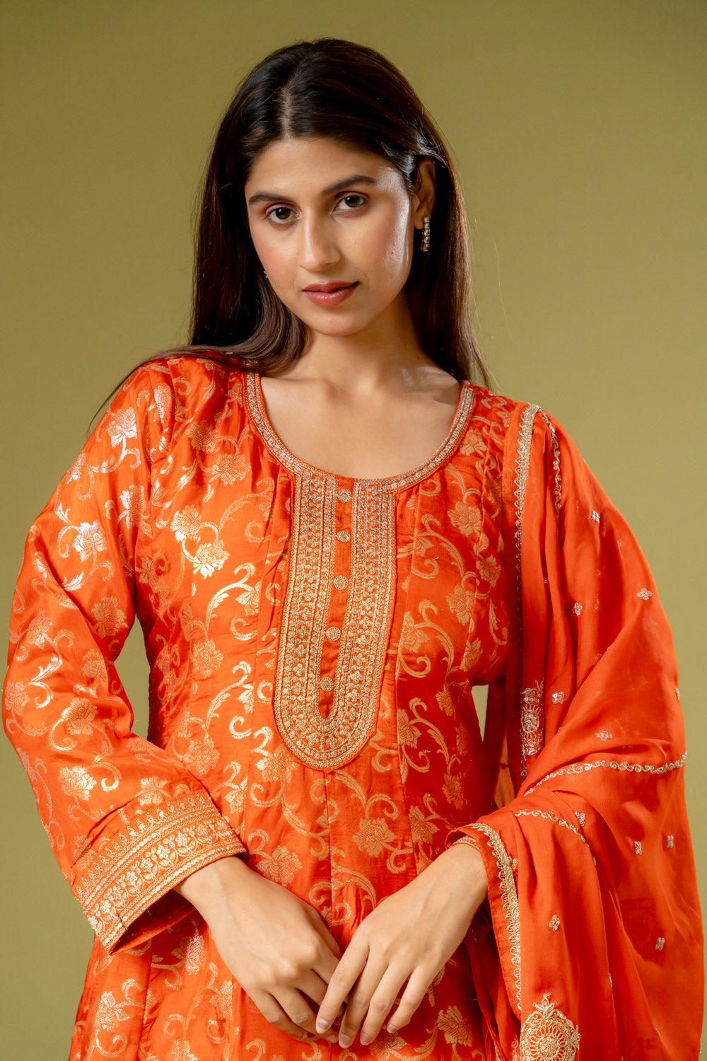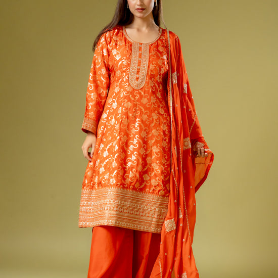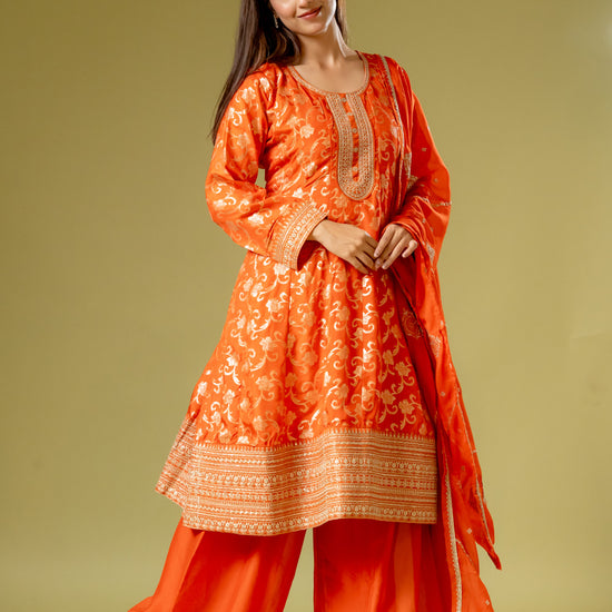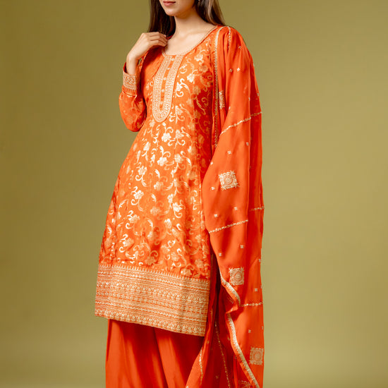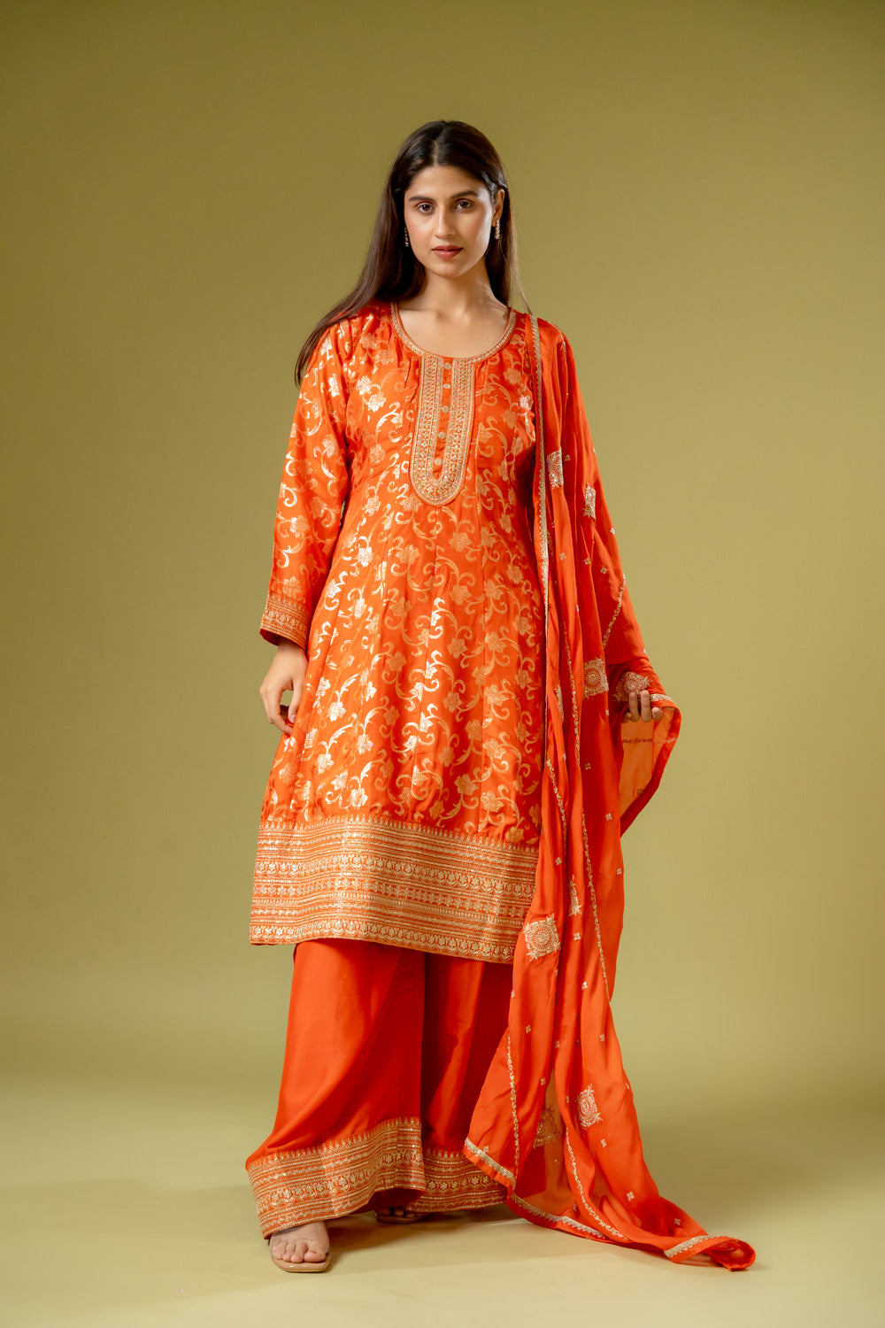 Panna Orange Georgette Readymade Suit And Palazzo With Georgette Dupatta