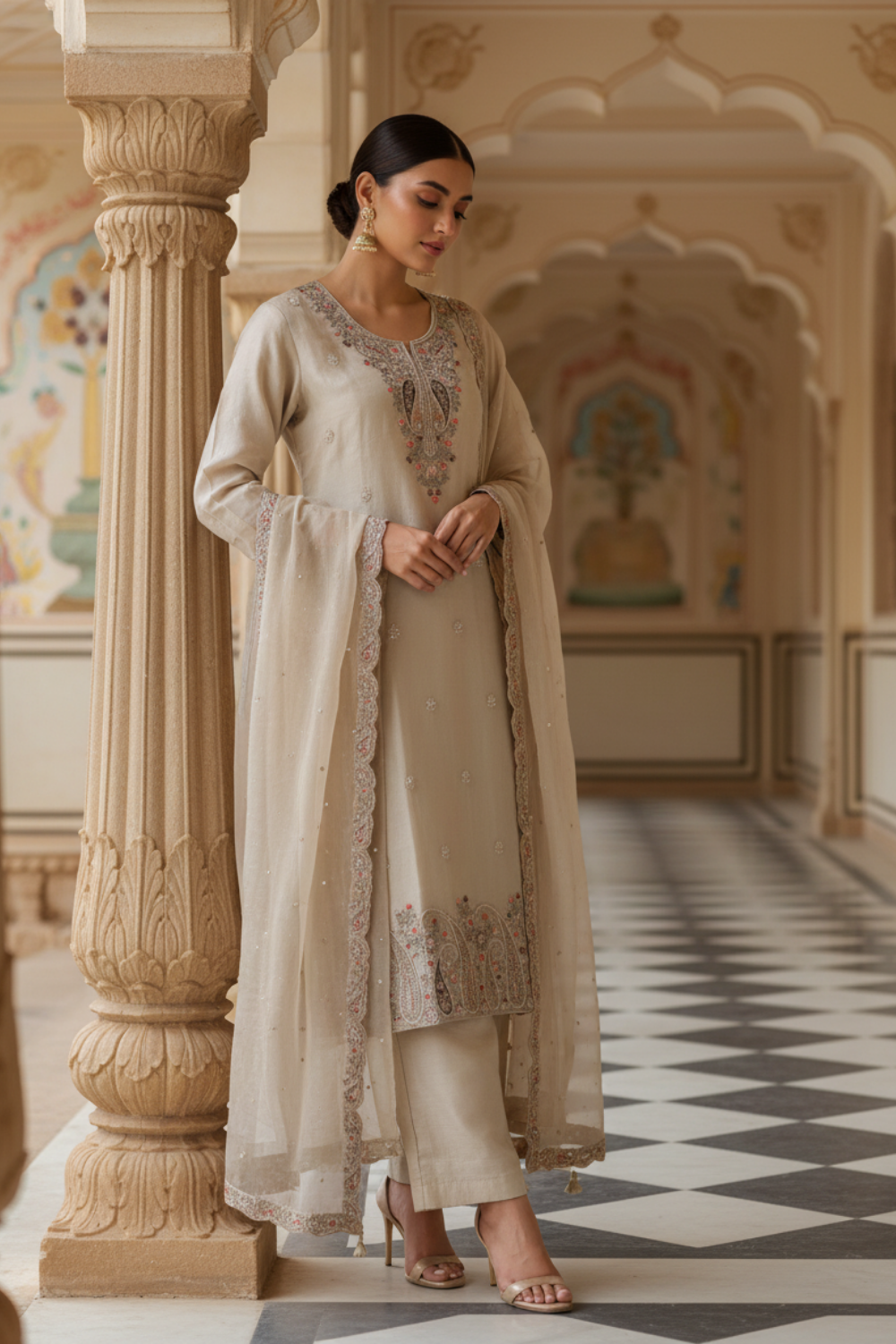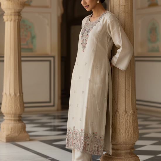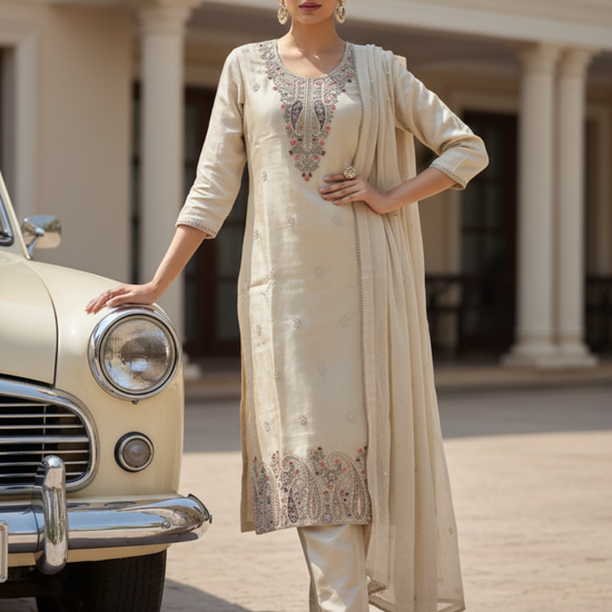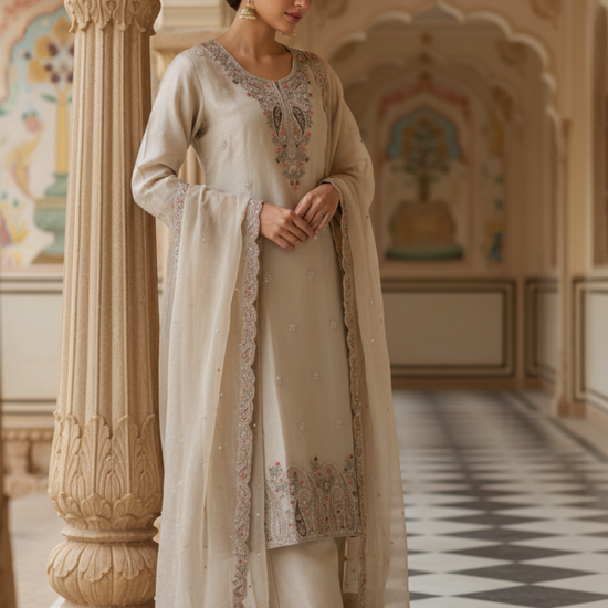 Panna Tussar Tissue Readymade Suit & Palazzo Pant With Tissue Dupatta