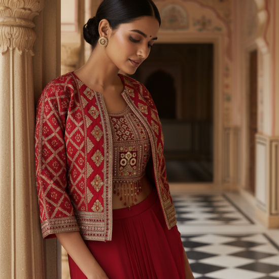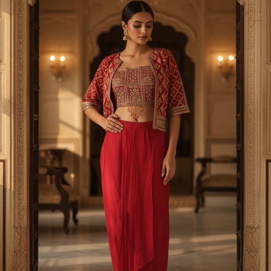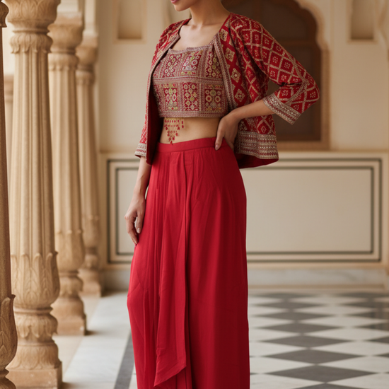 Panna Rani Crepe Readymade Sharara Set With Jacket