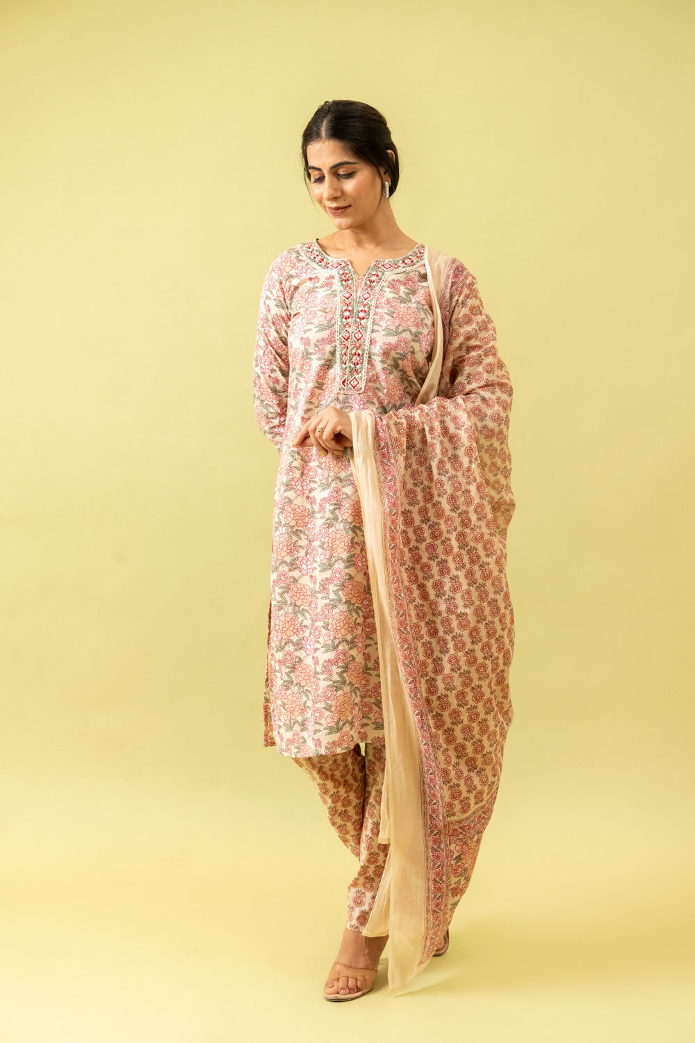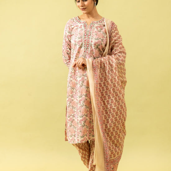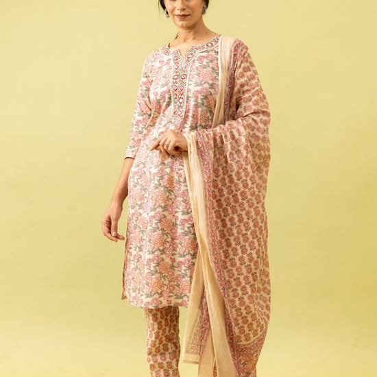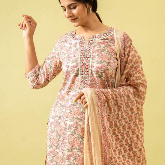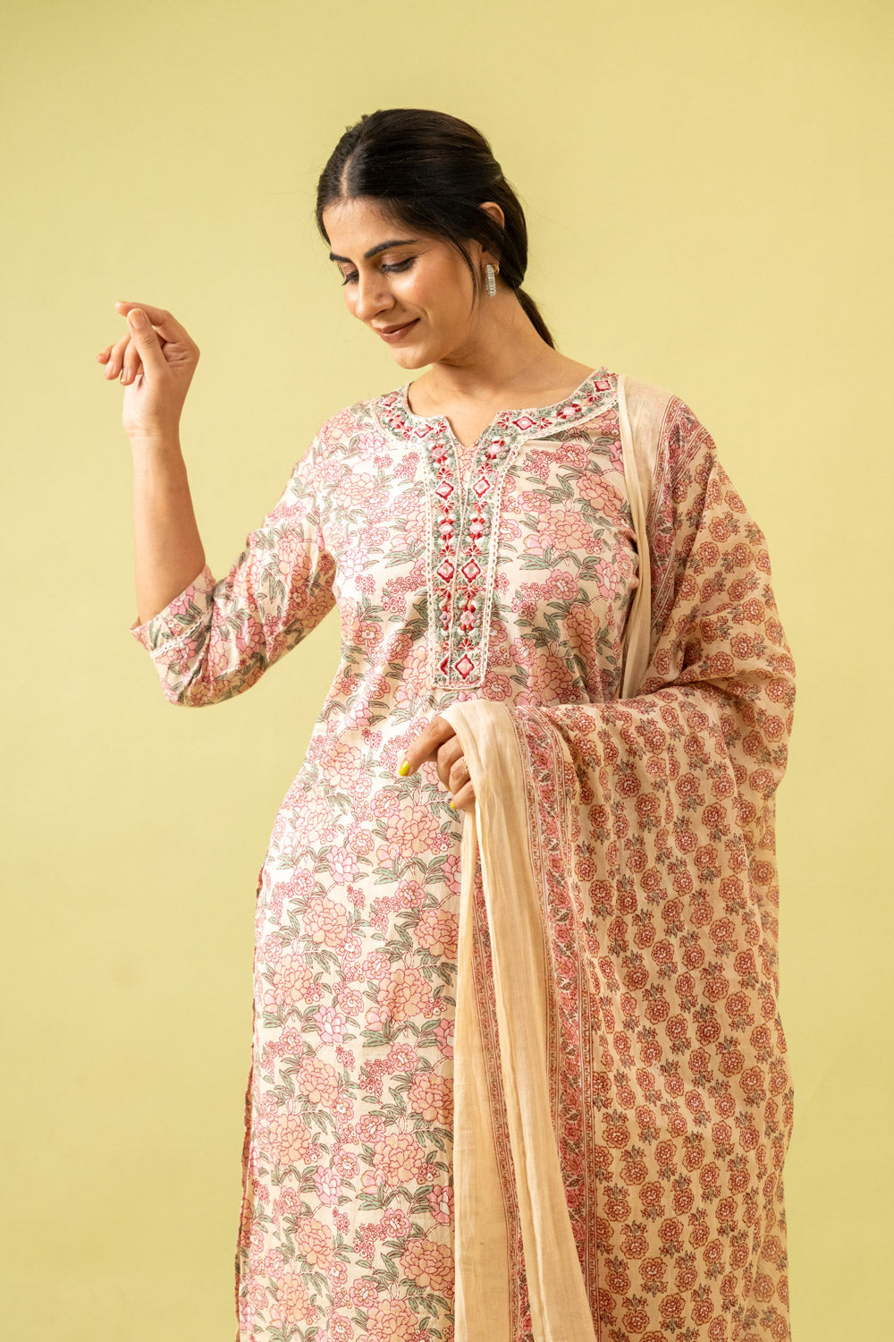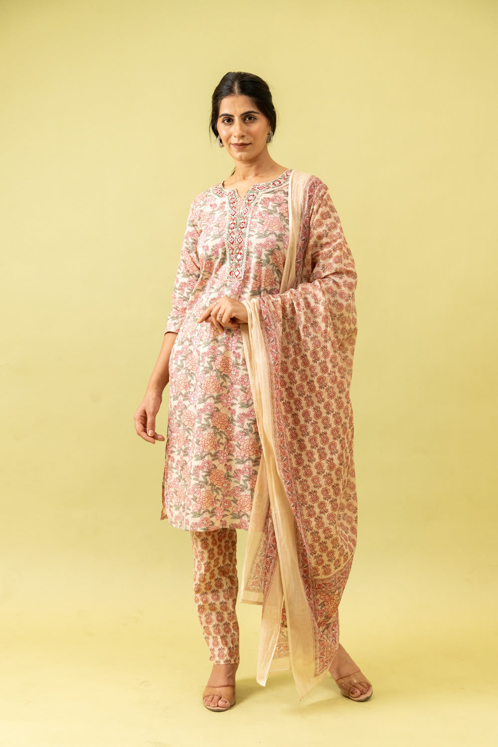 Panna White Cotton Readymade Suit And Pant With Cotton Dupatta