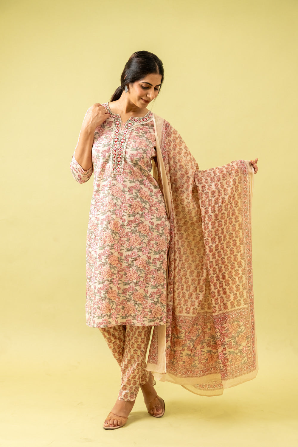 Work : Floral Print, Mirror Sheet Work & Thread Work