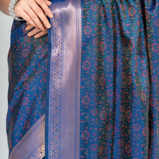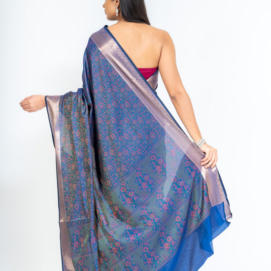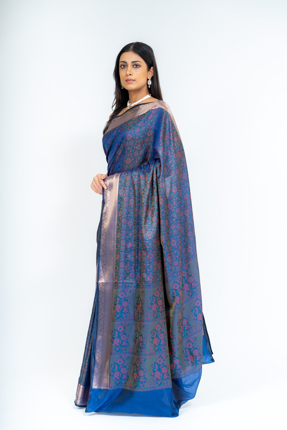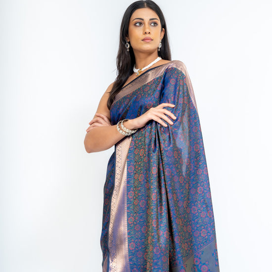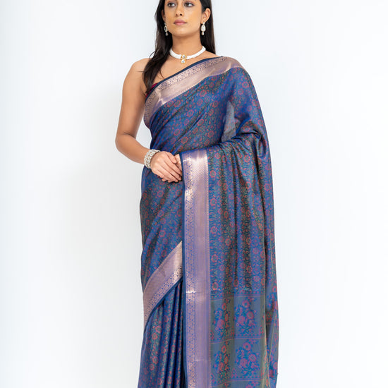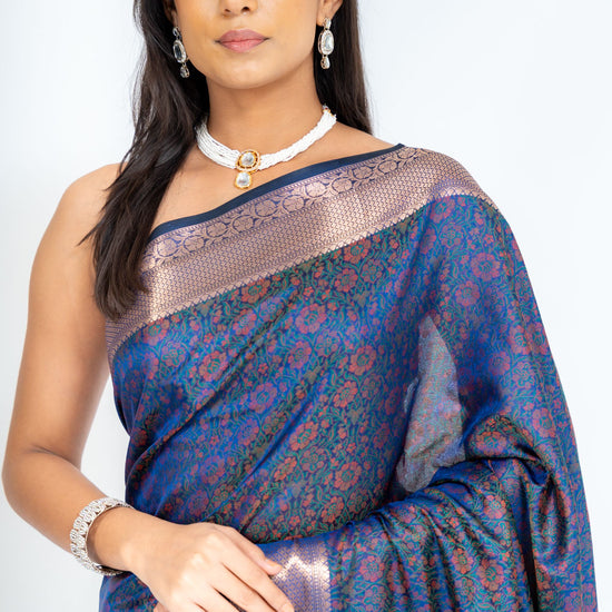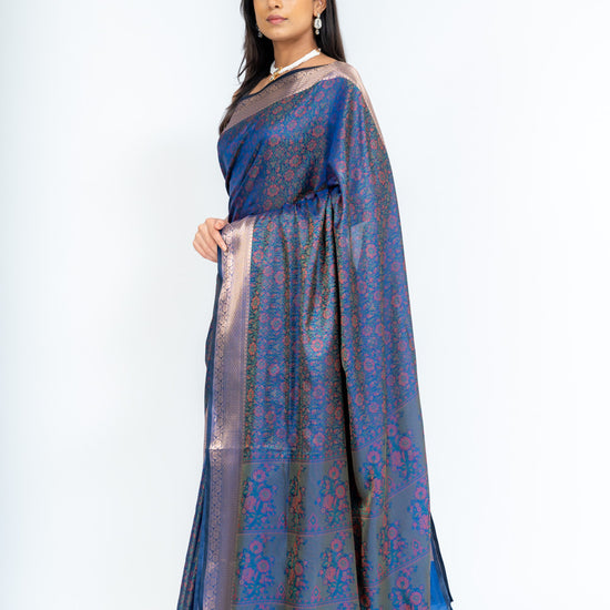 Panna Midnight Hues Navy Banarasi Silk Saree With Unstitched Blouse