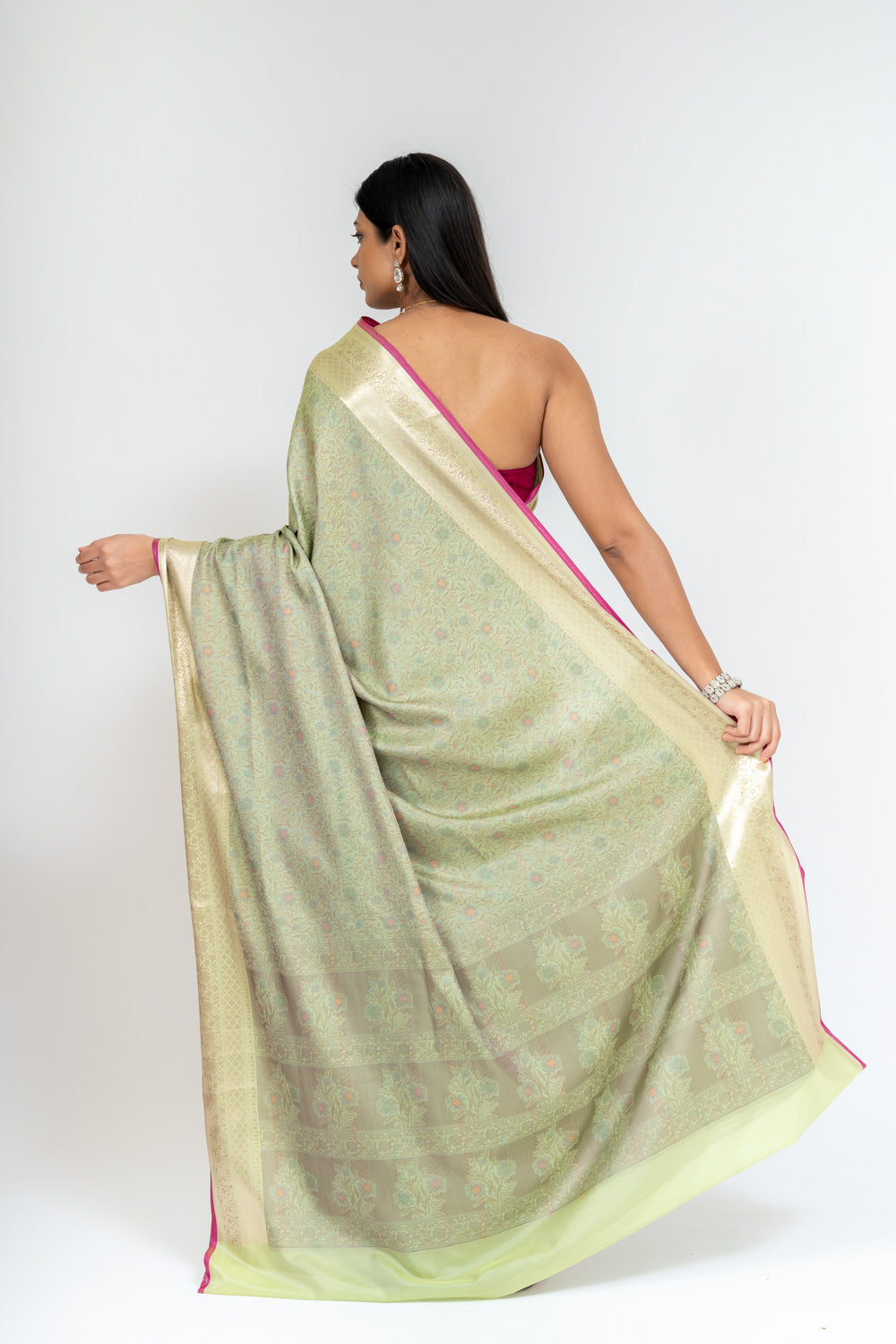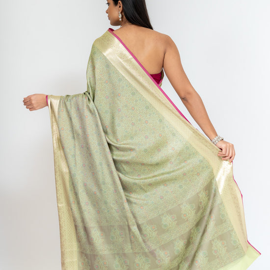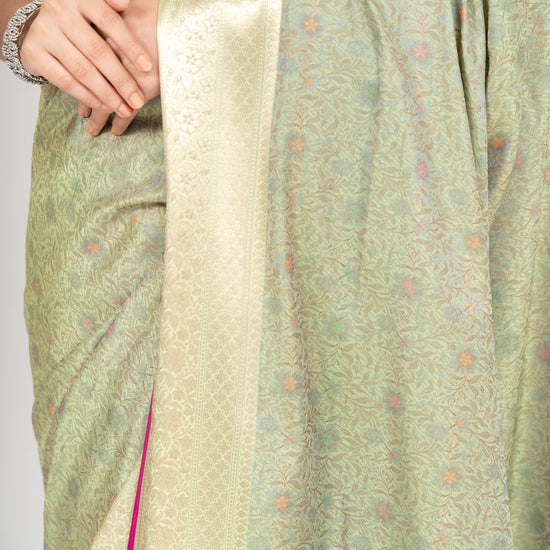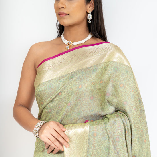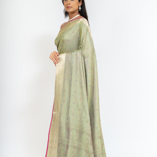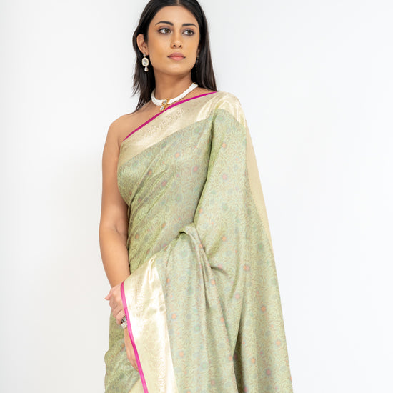 Wrapped In Elegance Pista Banarasi Silk Saree With Unstitched Blouse – The Panna Shop