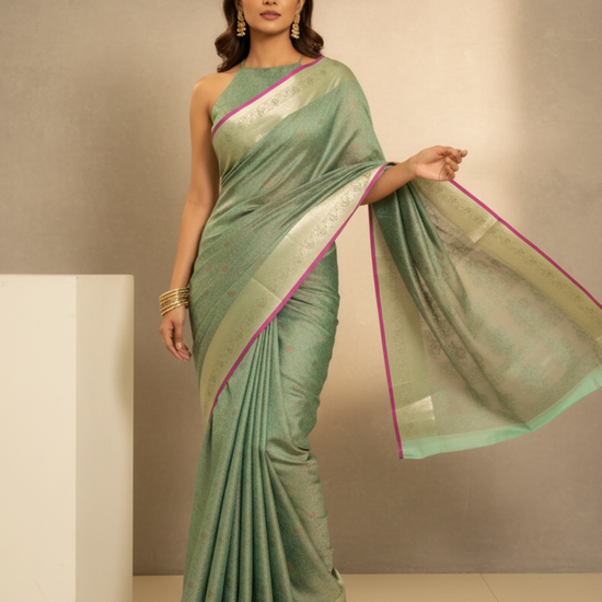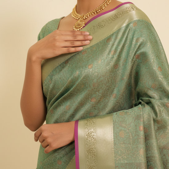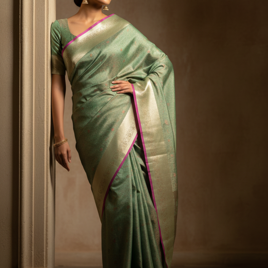 Flow In Freshness With Sea Green Banarasi Silk Saree With Unstitched B – The Panna Shop