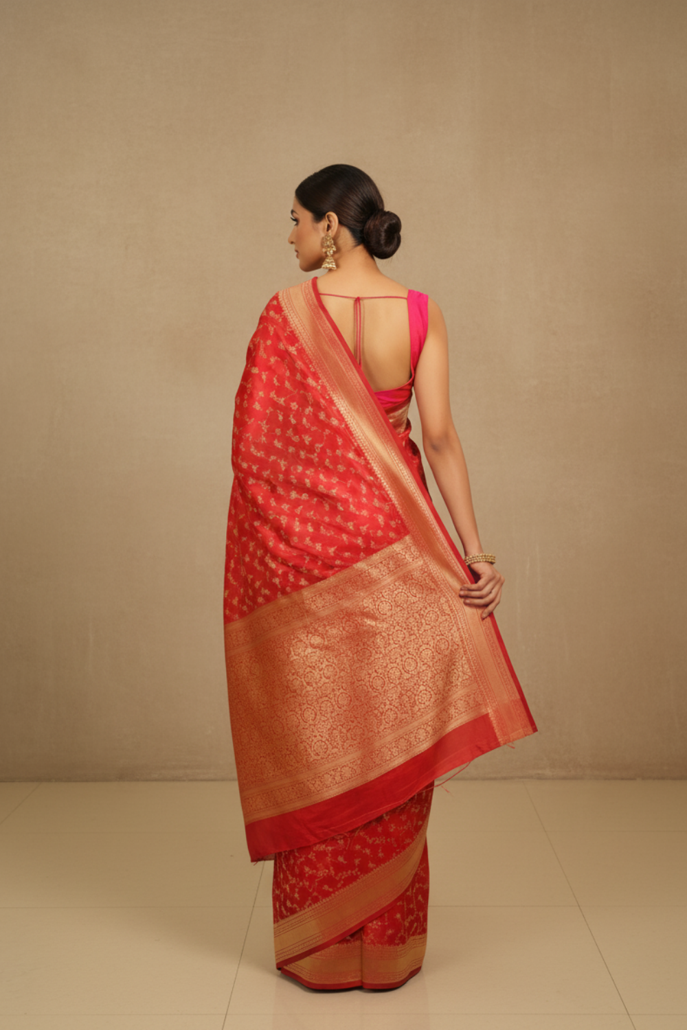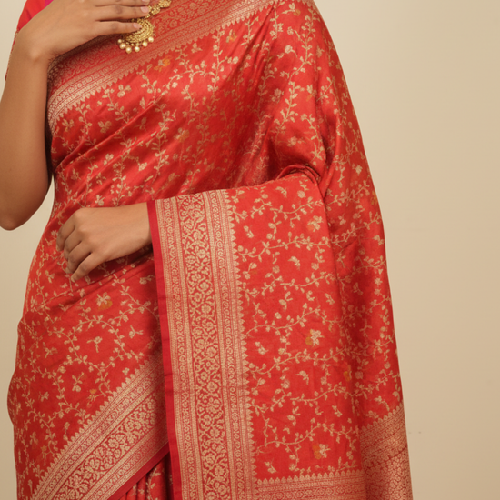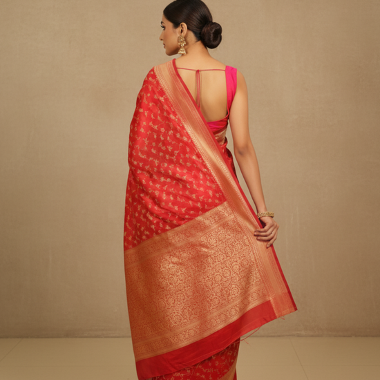 Nature’s Own Couture Rust Banarasi Silk Saree With Unstitched Blouse – The Panna Shop