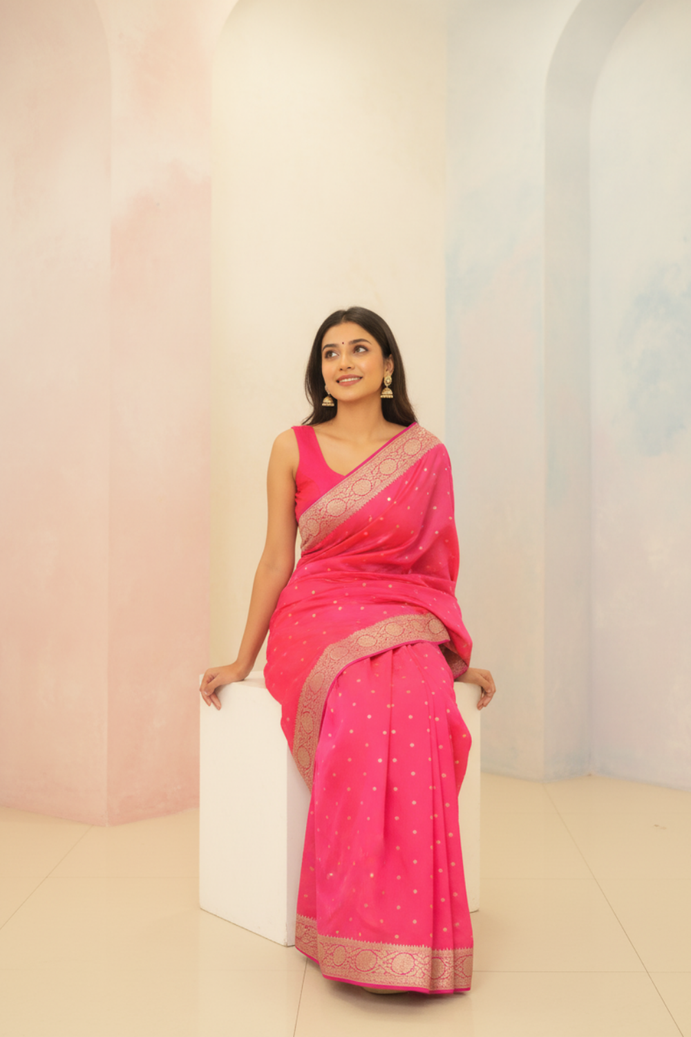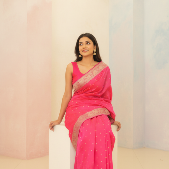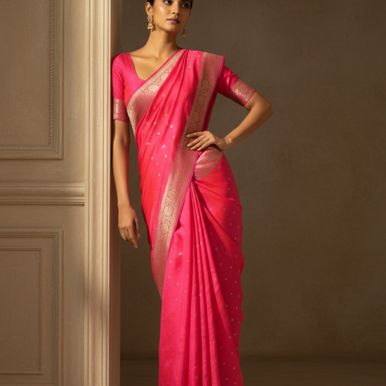 Timeless Elegance Rani Crepe Silk Saree With Unstitched Blouse – The Panna Shop