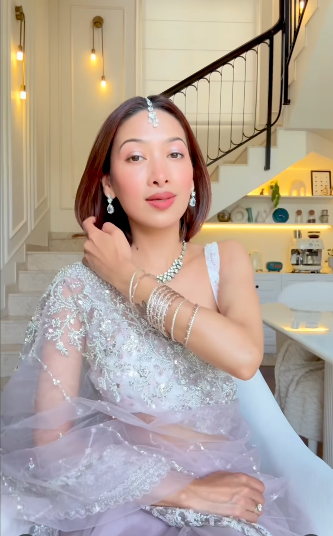 Panna Pink Net Embroidered Saree With Unstitched Blouse (Ft:-Isha Borah)