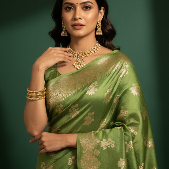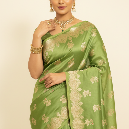 Panna Wrapped In Elegance Pista Banarasi Silk Saree With Unstitched Blouse