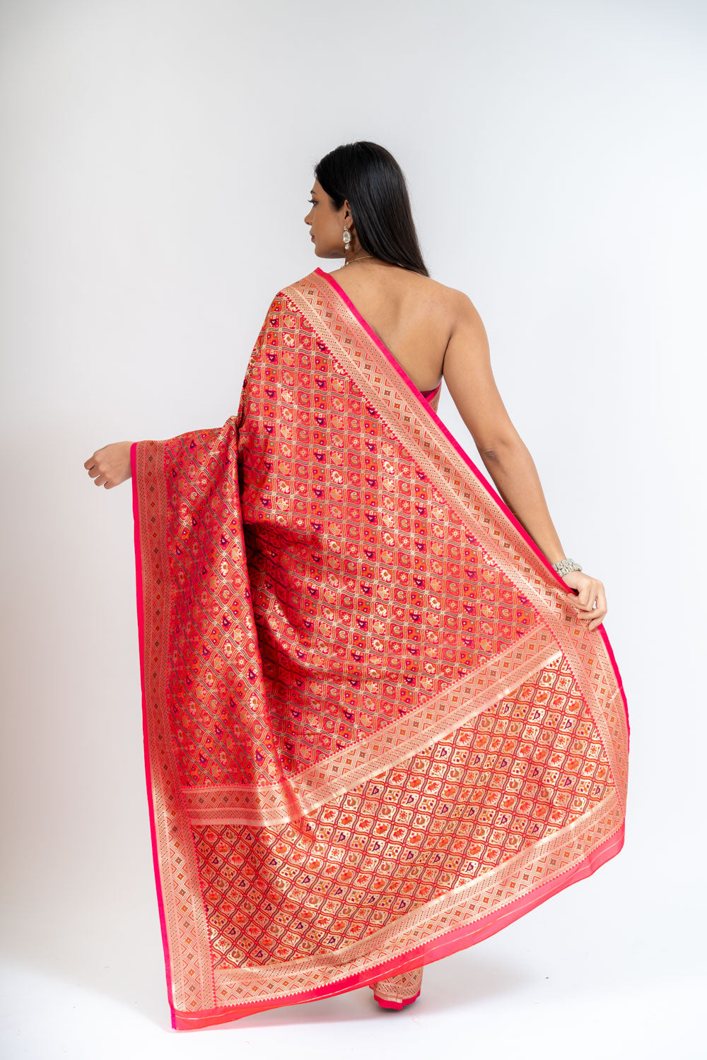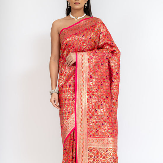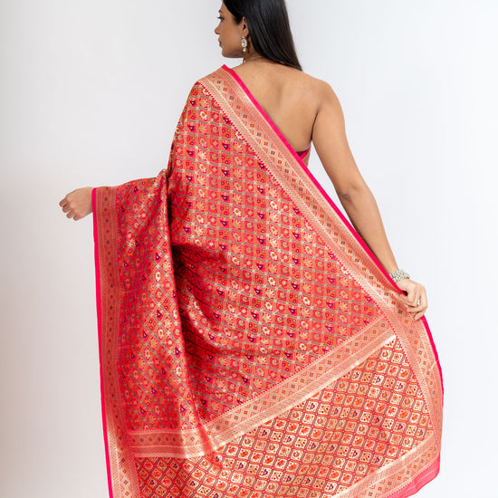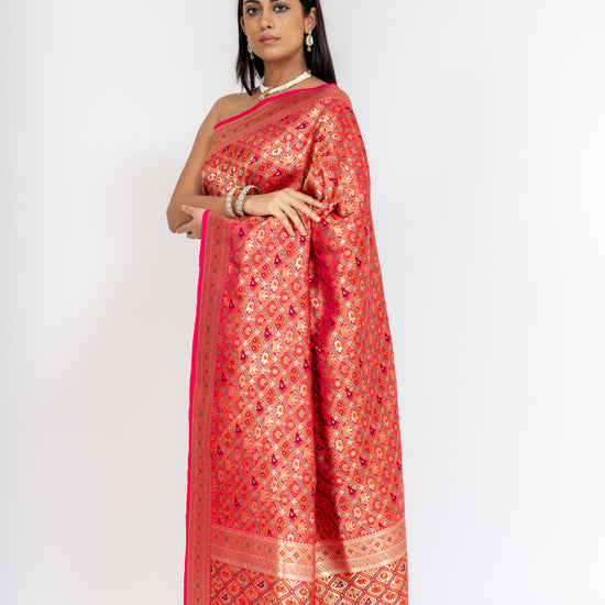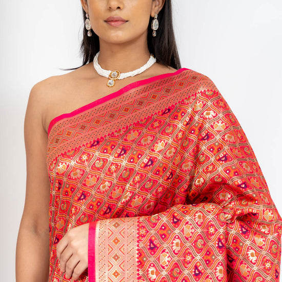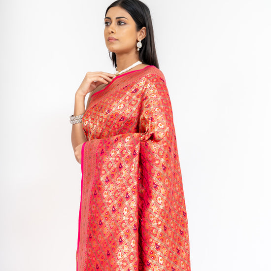 Panna Timeless Elegance Rani Banarasi Silk Saree With Unstitched Blouse