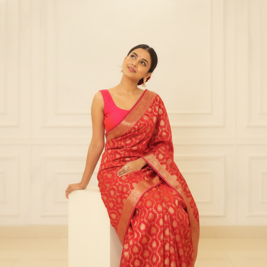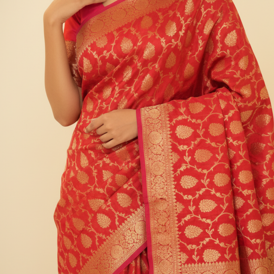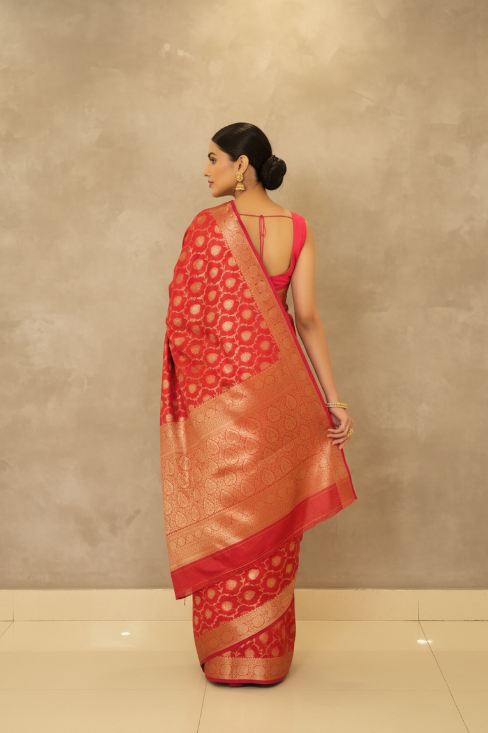 Heritage Heirloom Maroon Banarasi Silk Saree With Unstitched Blouse