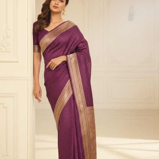 Panna Deep Hues Wine Banarasi Silk Saree With Unstitched Blouse