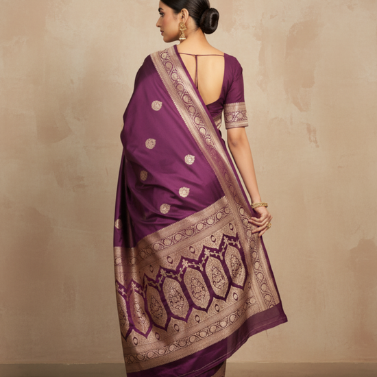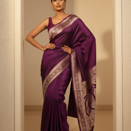 Experience true heritage luxury with this elegant Banarasi silk saree, beautifully crafted with intricate Banarasi woven zari work. The rich silk fabric offers a natural sheen and regal drape, while the detailed zari weaving showcases the timeless artistry and traditional craftsmanship of Banaras. Perfect for weddings, festive occasions, and grand celebrations, this saree embodies classic elegance, cultural richness, and refined sophistication. A masterpiece that adds a touch of royal charm to every moment.