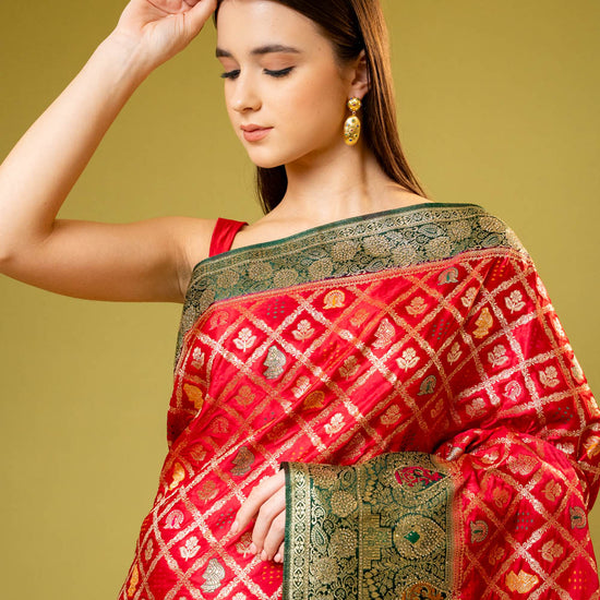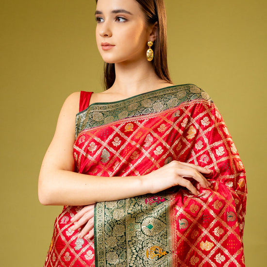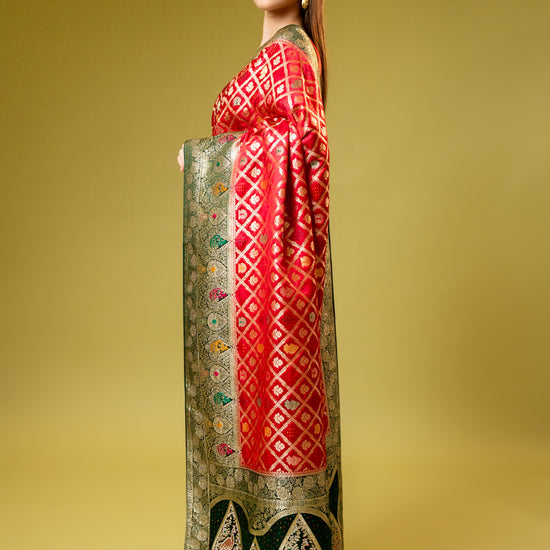 Panna Rani Banarasi Silk Saree With Unstitched Blouse