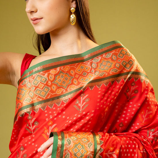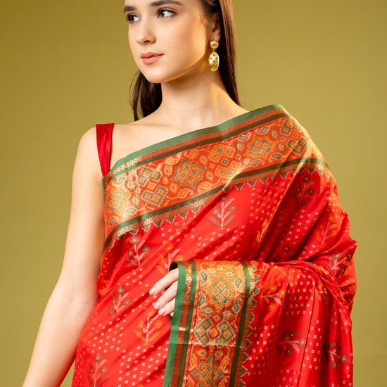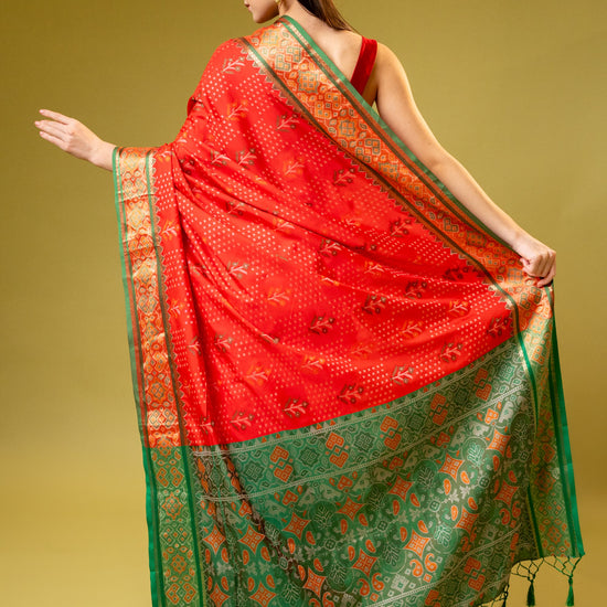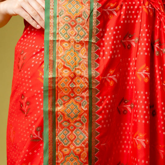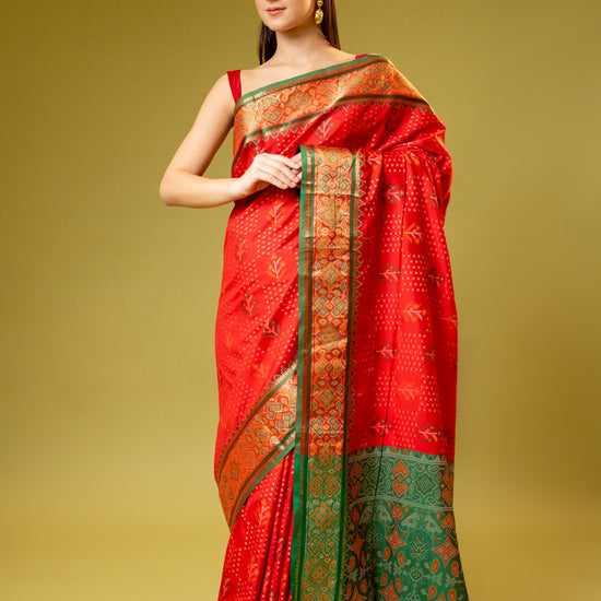 Panna Coral Banarasi Silk Saree With Unstitched Blouse