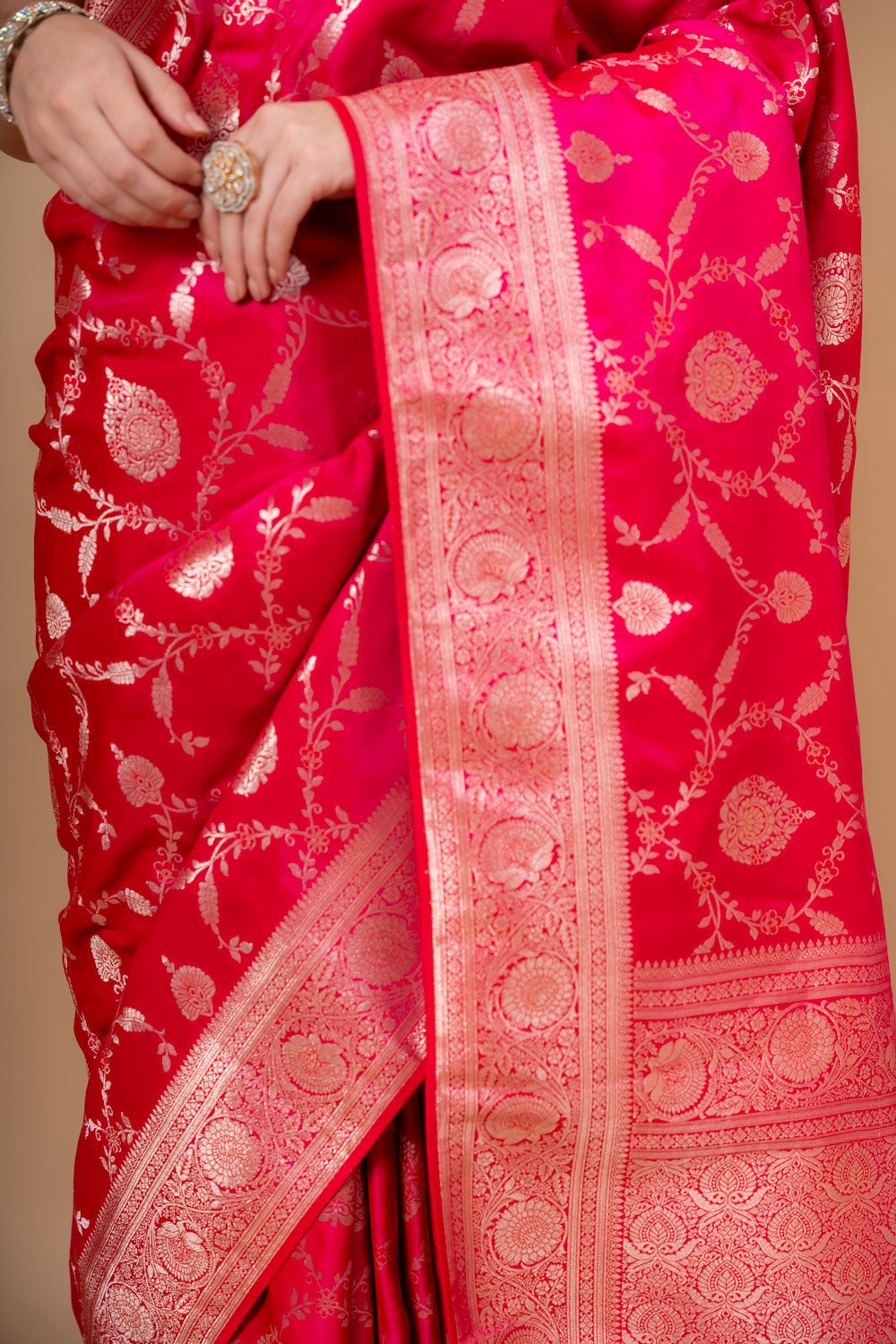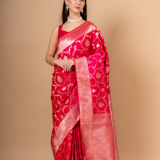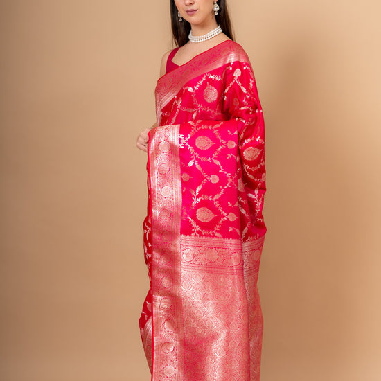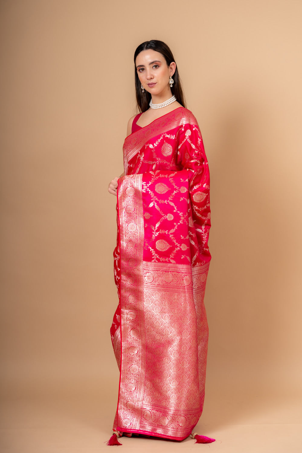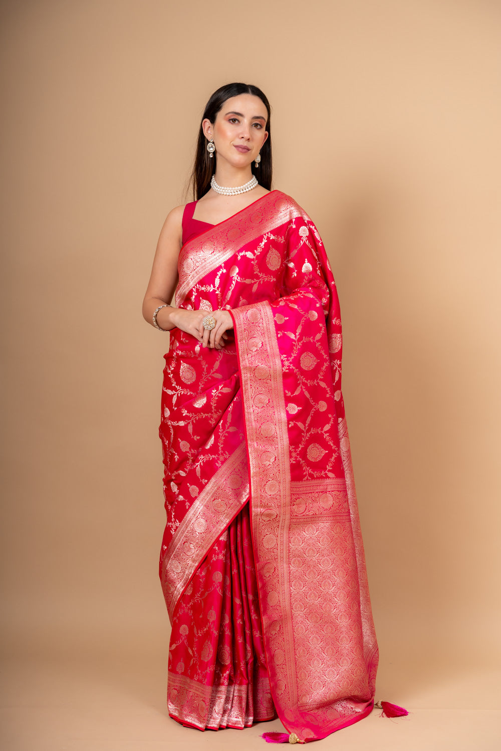 Panna Timeless Elegance Rani Banarasi Silk Saree With Unstitched Blouse