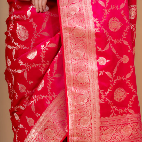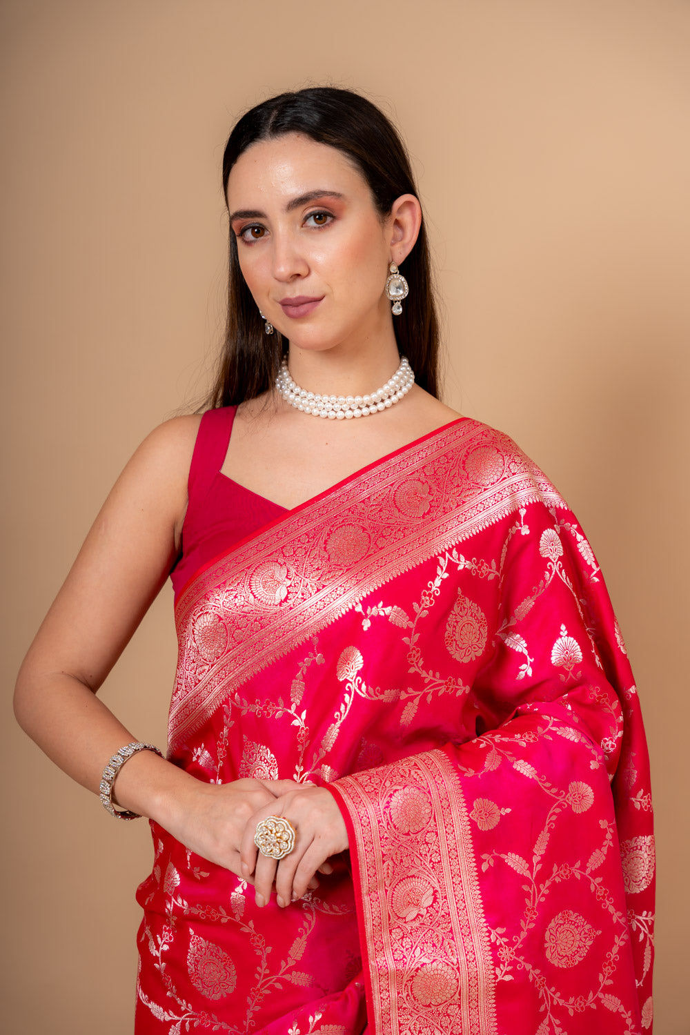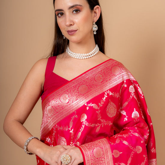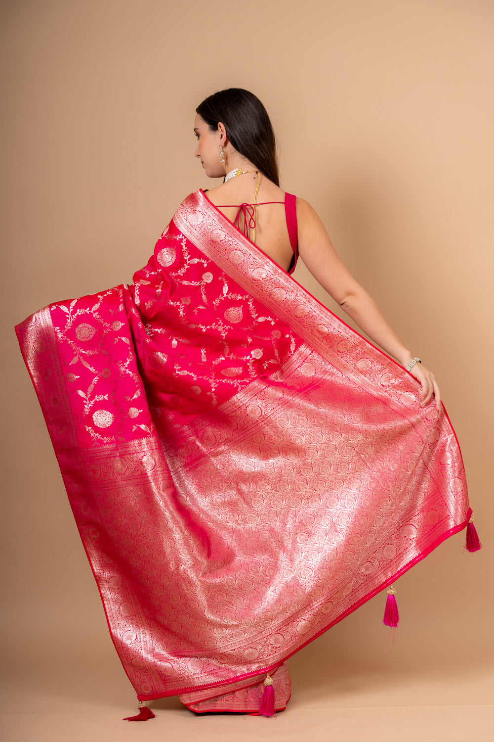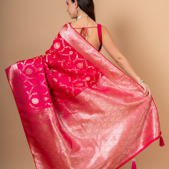 Panna Timeless Elegance Rani Banarasi Silk Saree With Unstitched Blouse