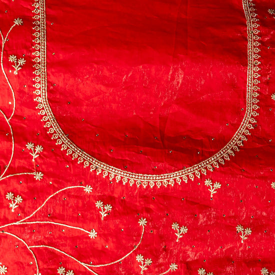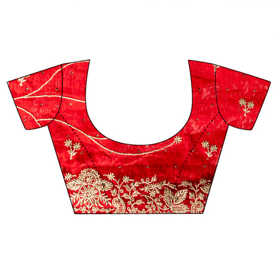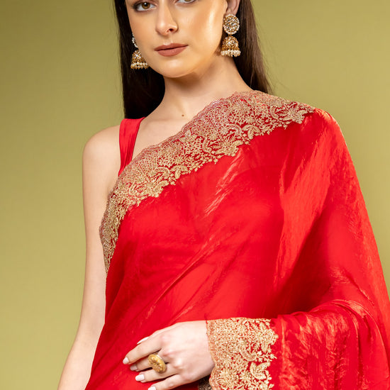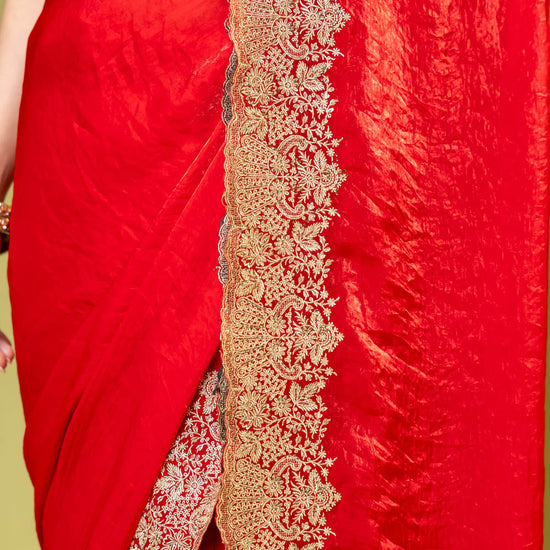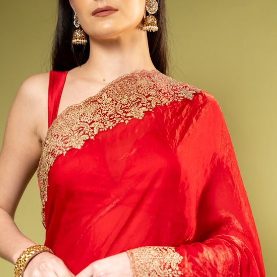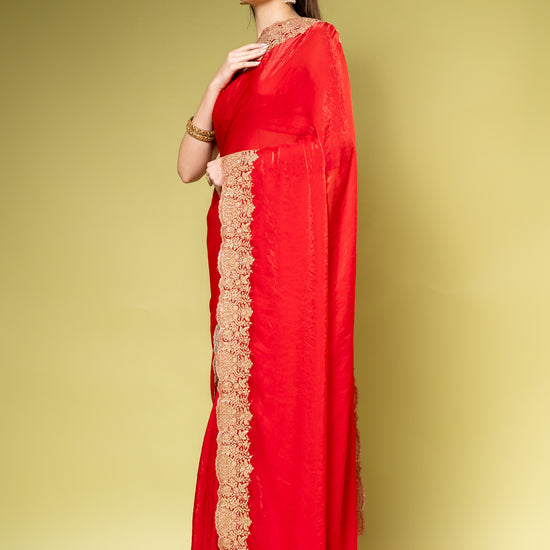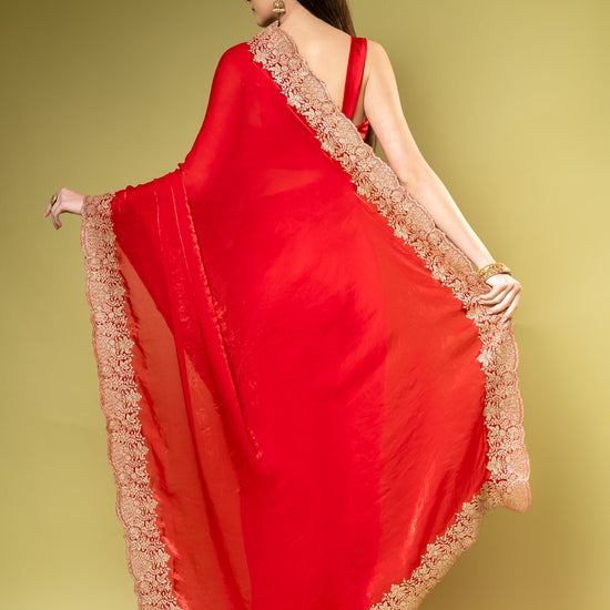 Panna Red Chiffon Saree With Unstitched Blouse