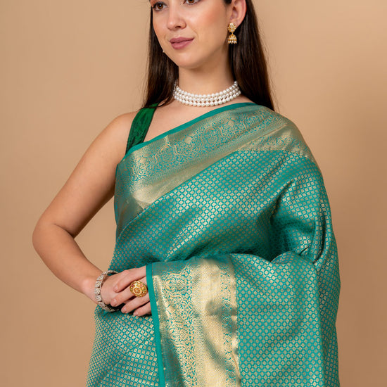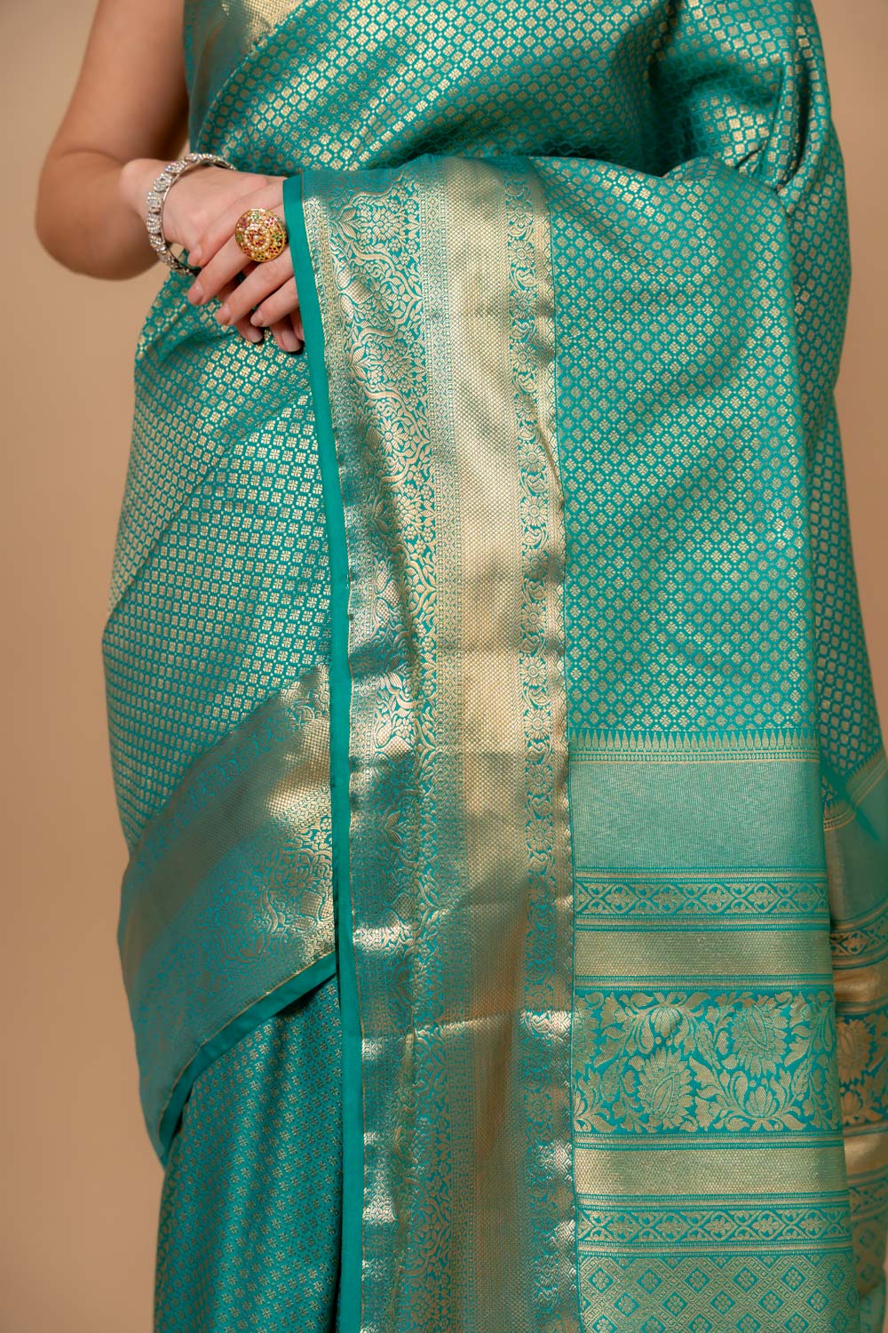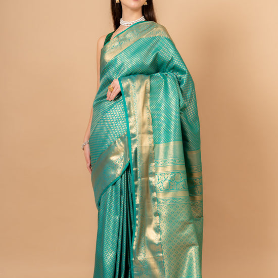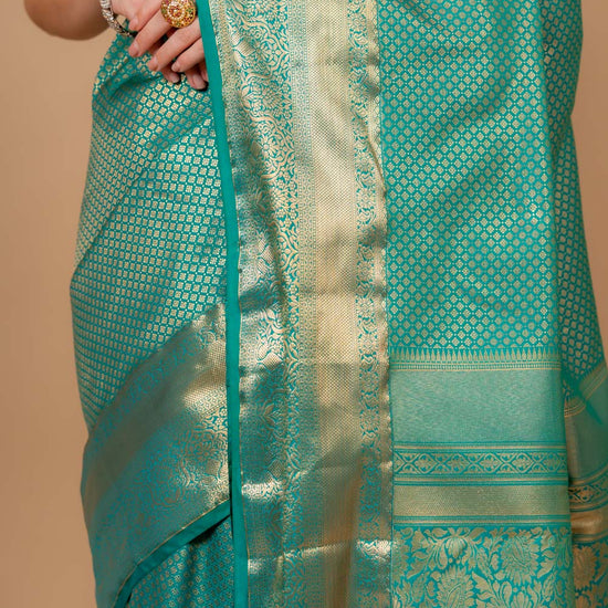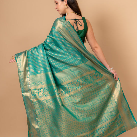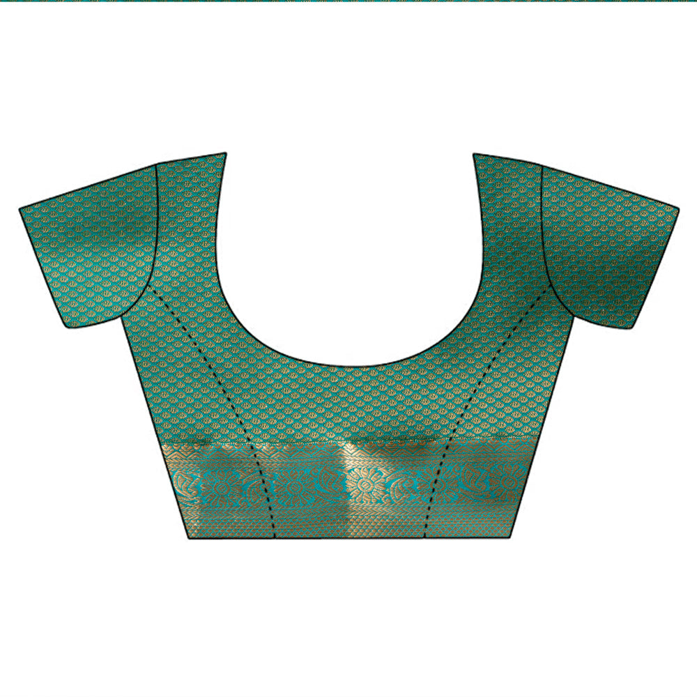 Panna Soft Hues Rama Banarasi Silk Saree With Unstitched Blouse