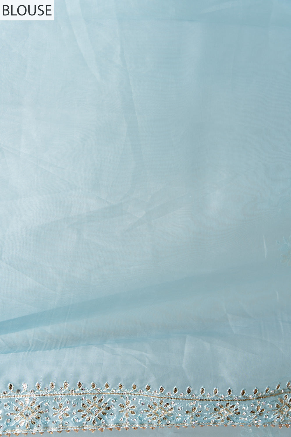 Panna Timelessly Yours Sky Blue Organza Saree With Unstitched Blouse