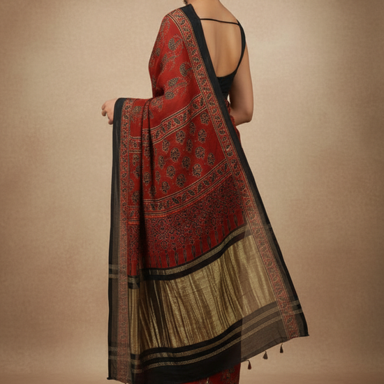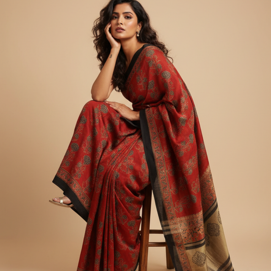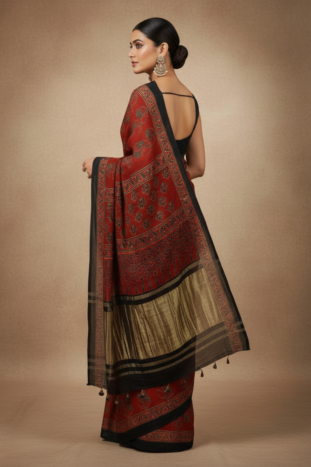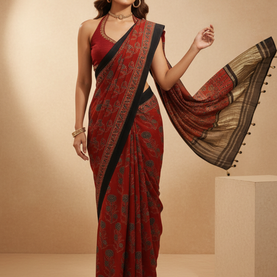 Maroon Satin Floral Printed Saree With Unstitched Blouse – The Panna Shop