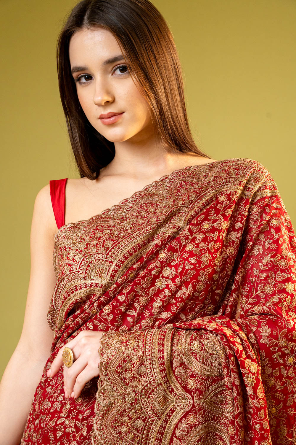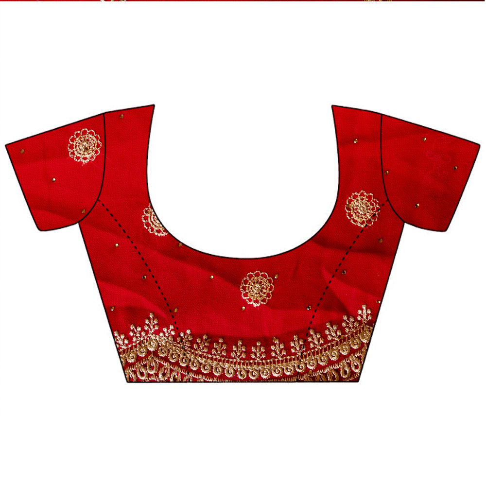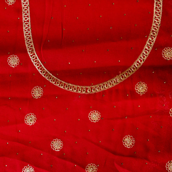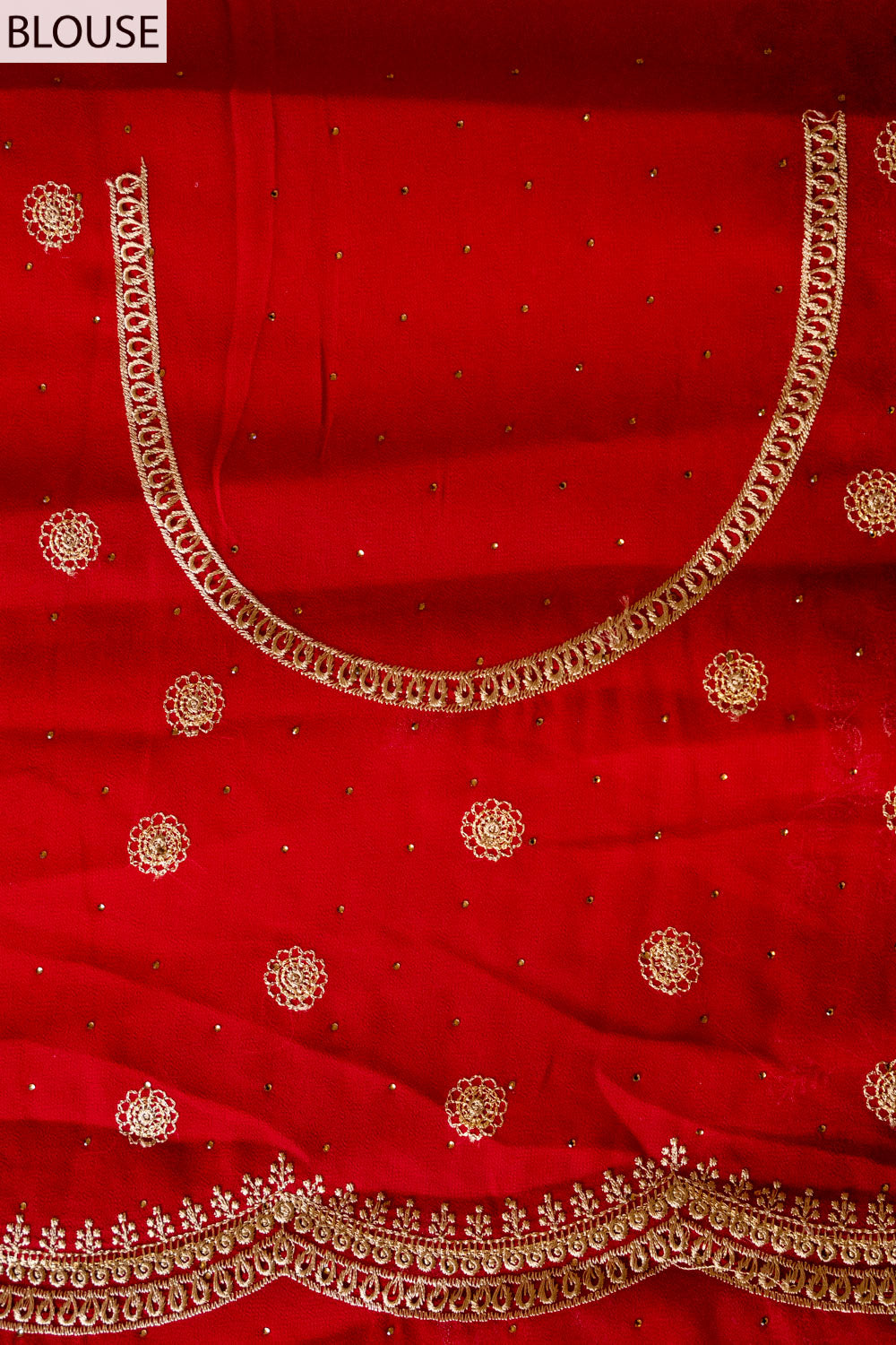 Panna Red Georgette Embroidered Saree With Unstitched Blouse