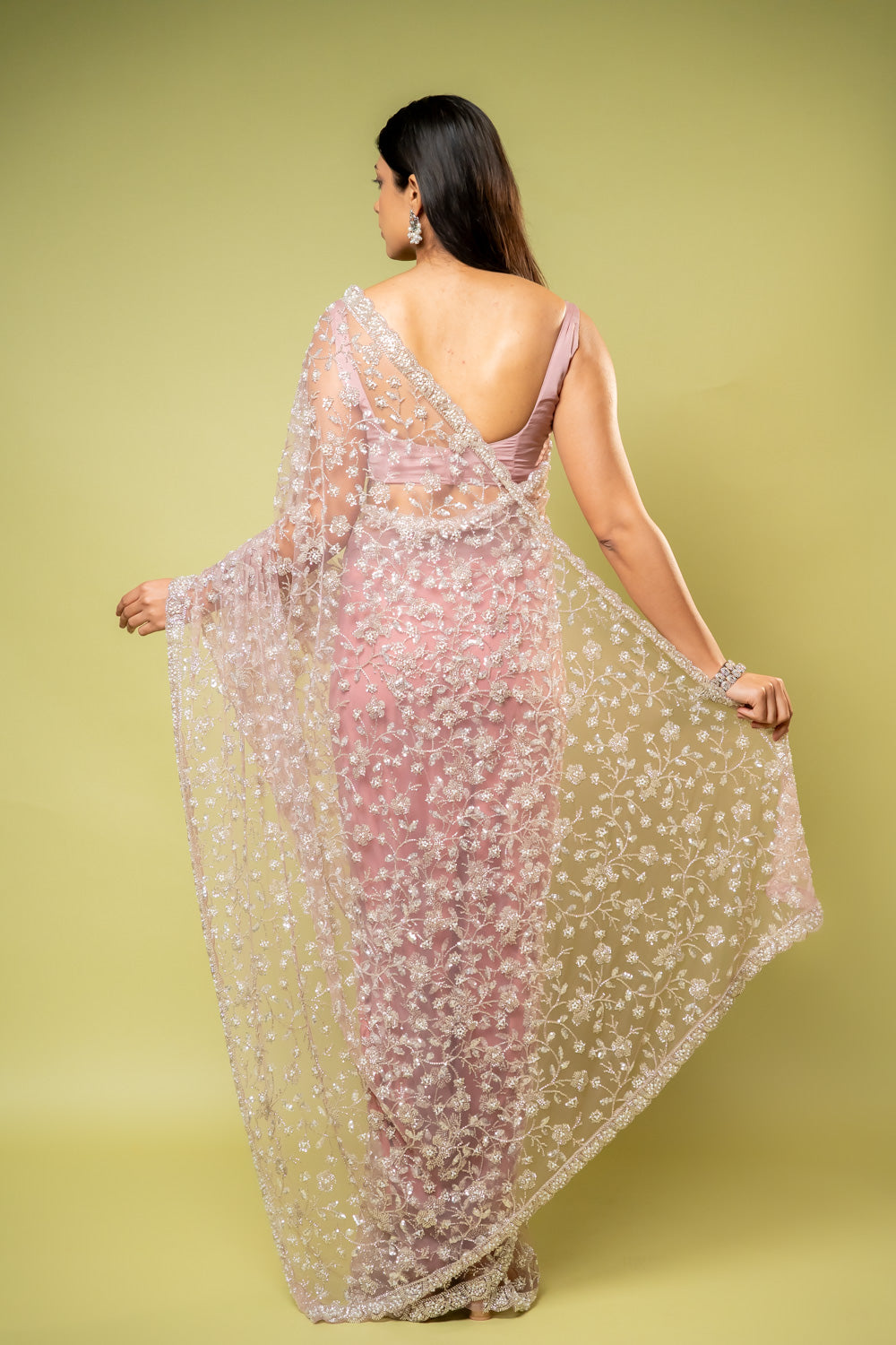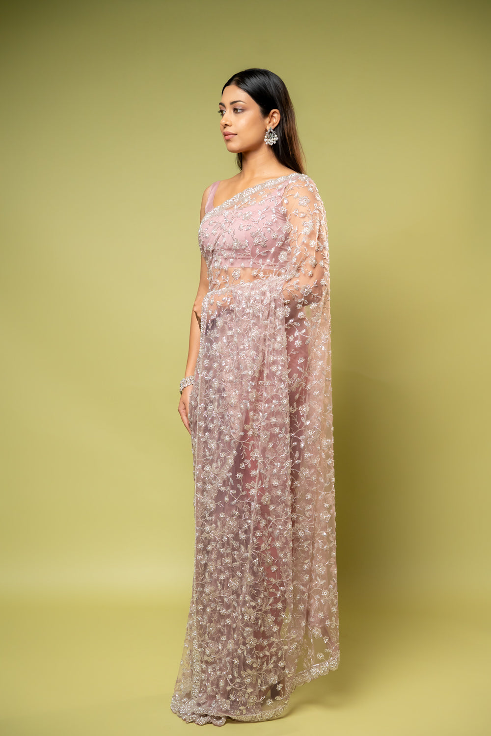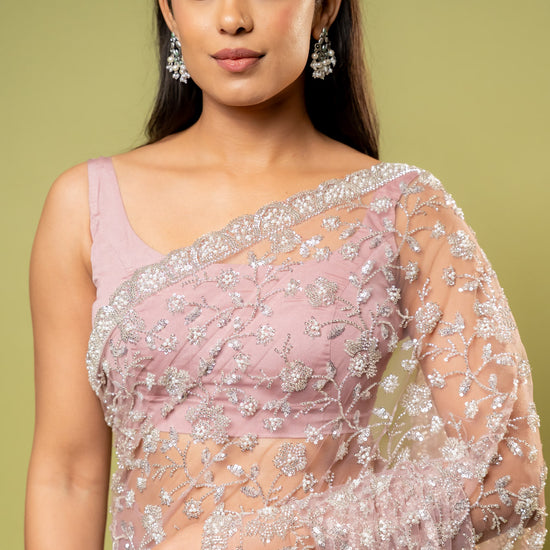Made from luxurious Net, this saree, adorned with Bead work, Cutdana, Sequence, suits Formal Occasion. Its Color Variations and design make it an elegant choice. Dry Wash / Dry Clean advised for care.
