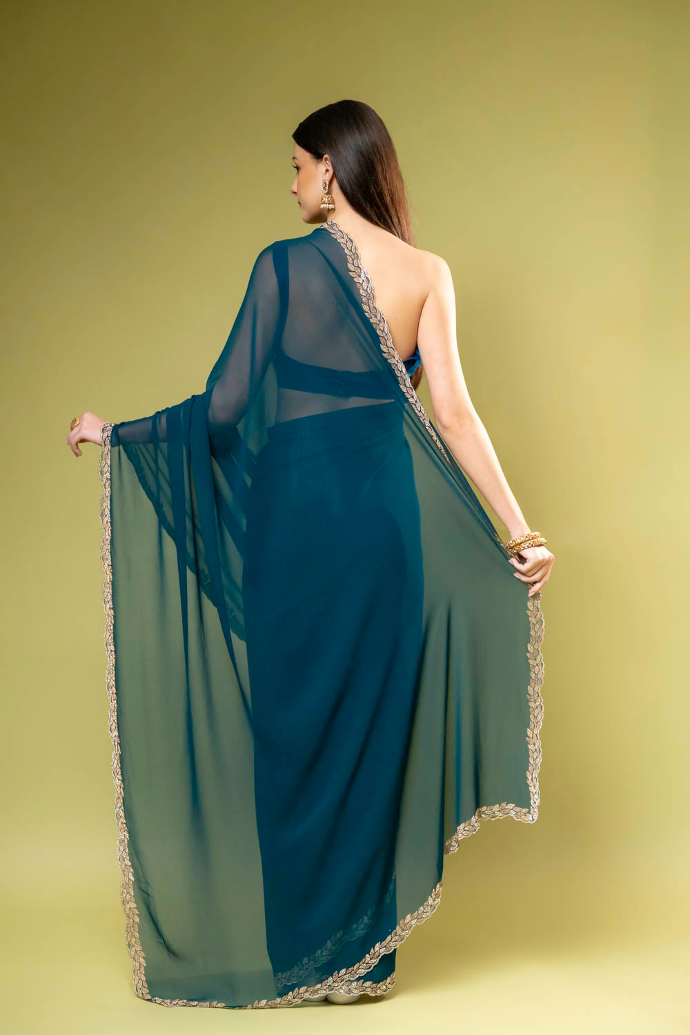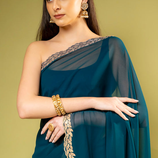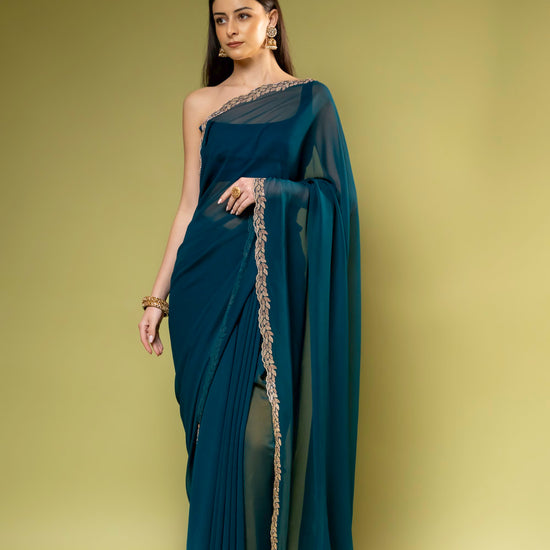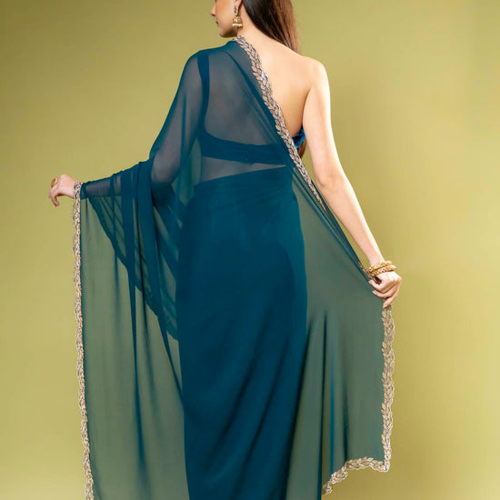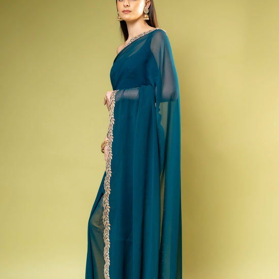 Panna Rama Georgette Embroidered Saree With Unstitched Blouse