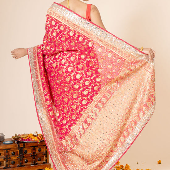 Work : Sequence, Swarovski, Digital Print, Zari Thread Work, Mirror, Dabka, Gotta Patti