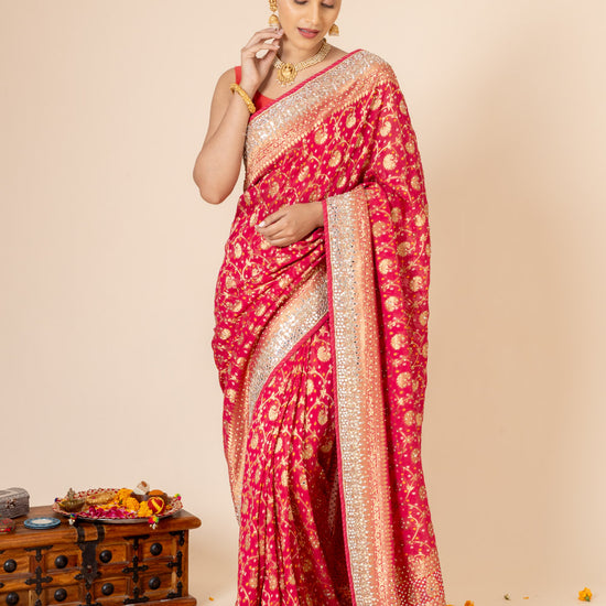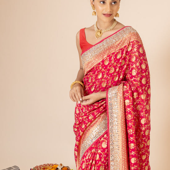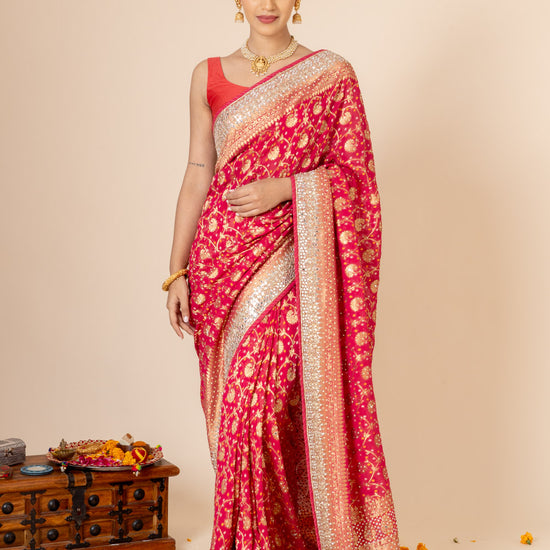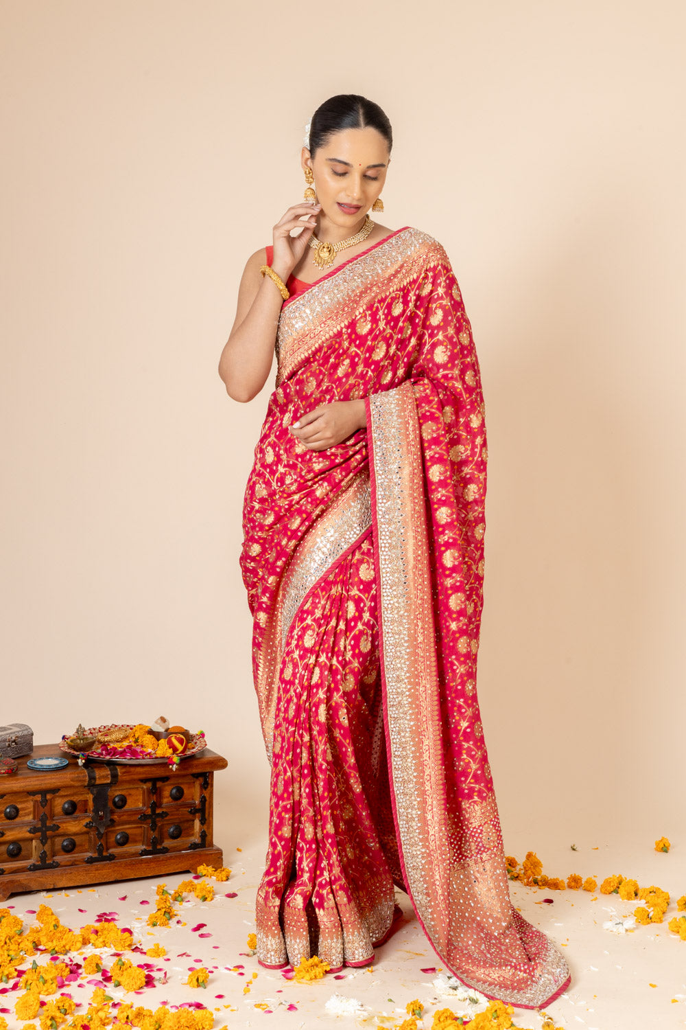 Panna Maroon Sequence & Swarovski Georgette Saree With Unstitched Blouse