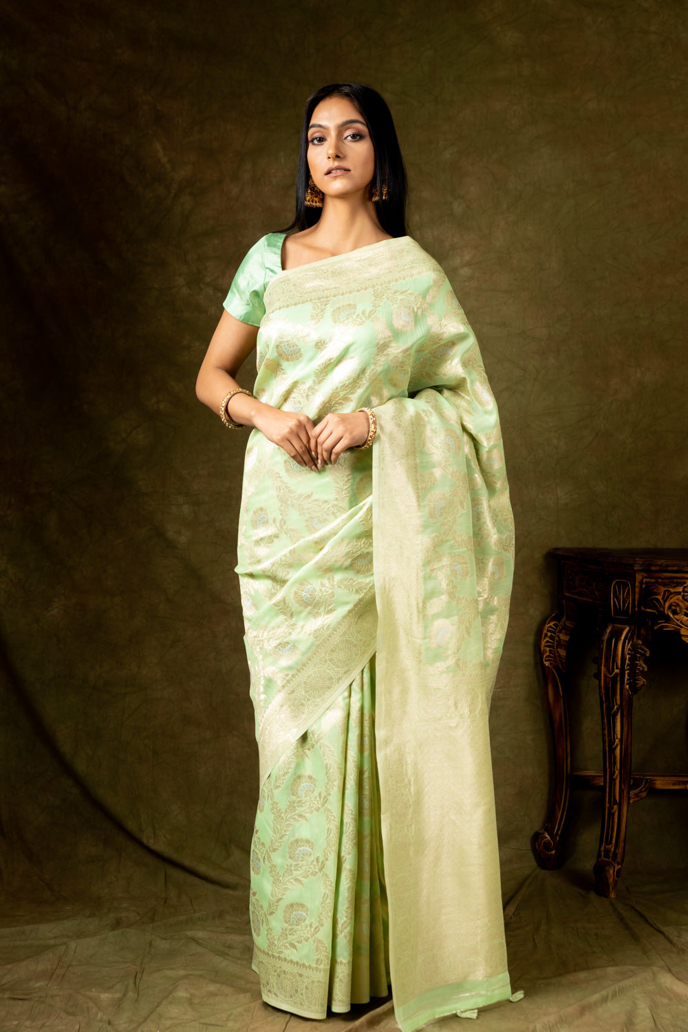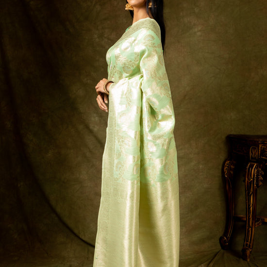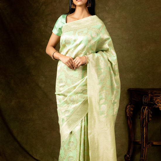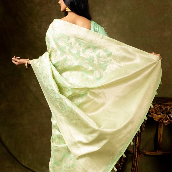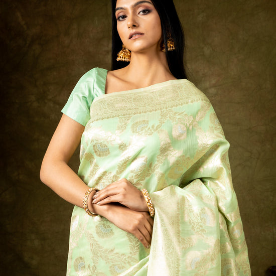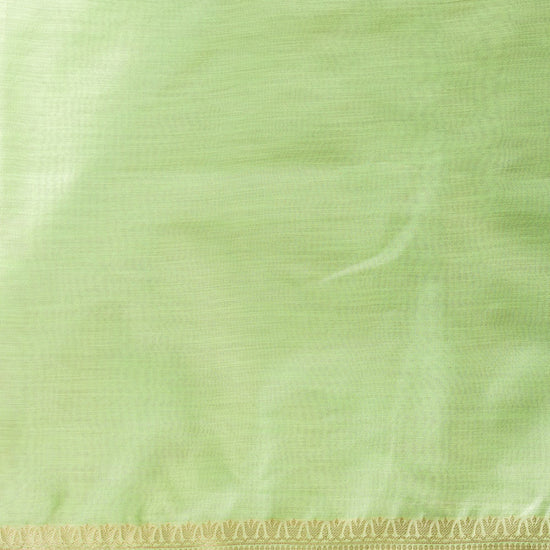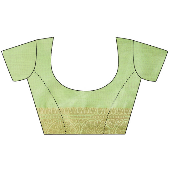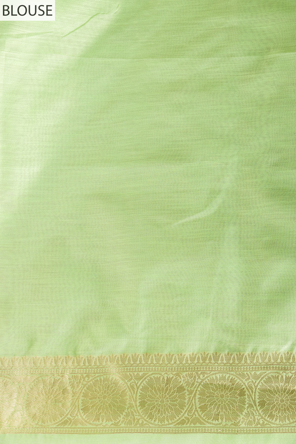 Panna Sea Green Chanderi Cotton Woven Zari Saree With Unstitched Blouse