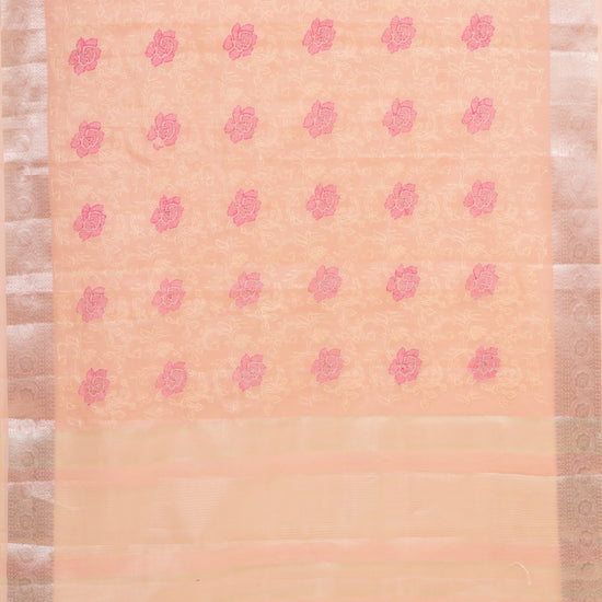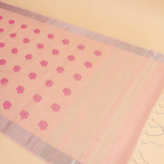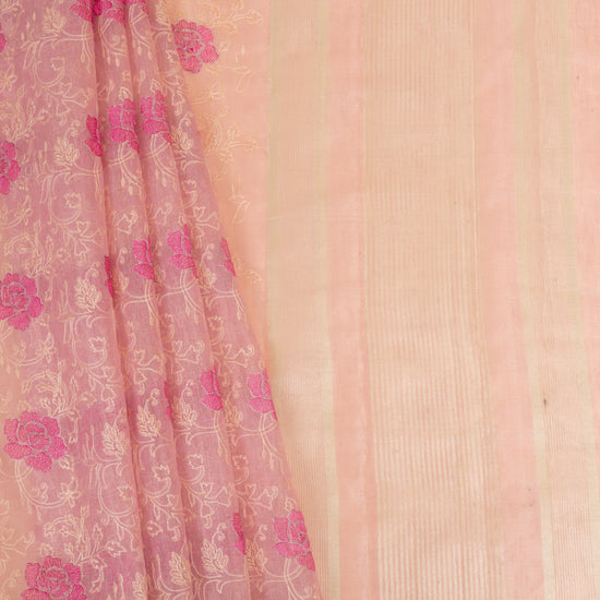 Panna Pink Linen Thread work Embroidered Saree With Unstitched Blouse