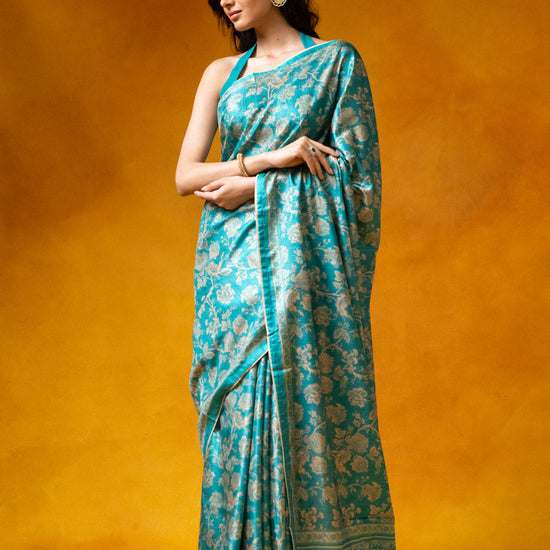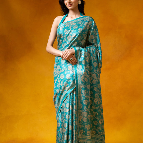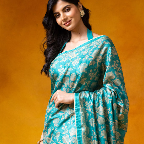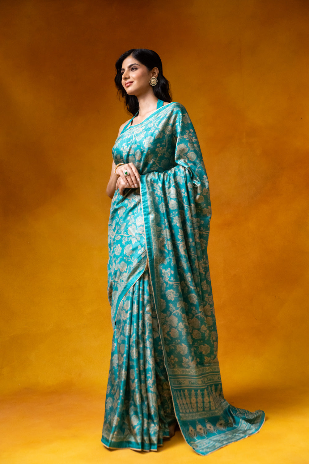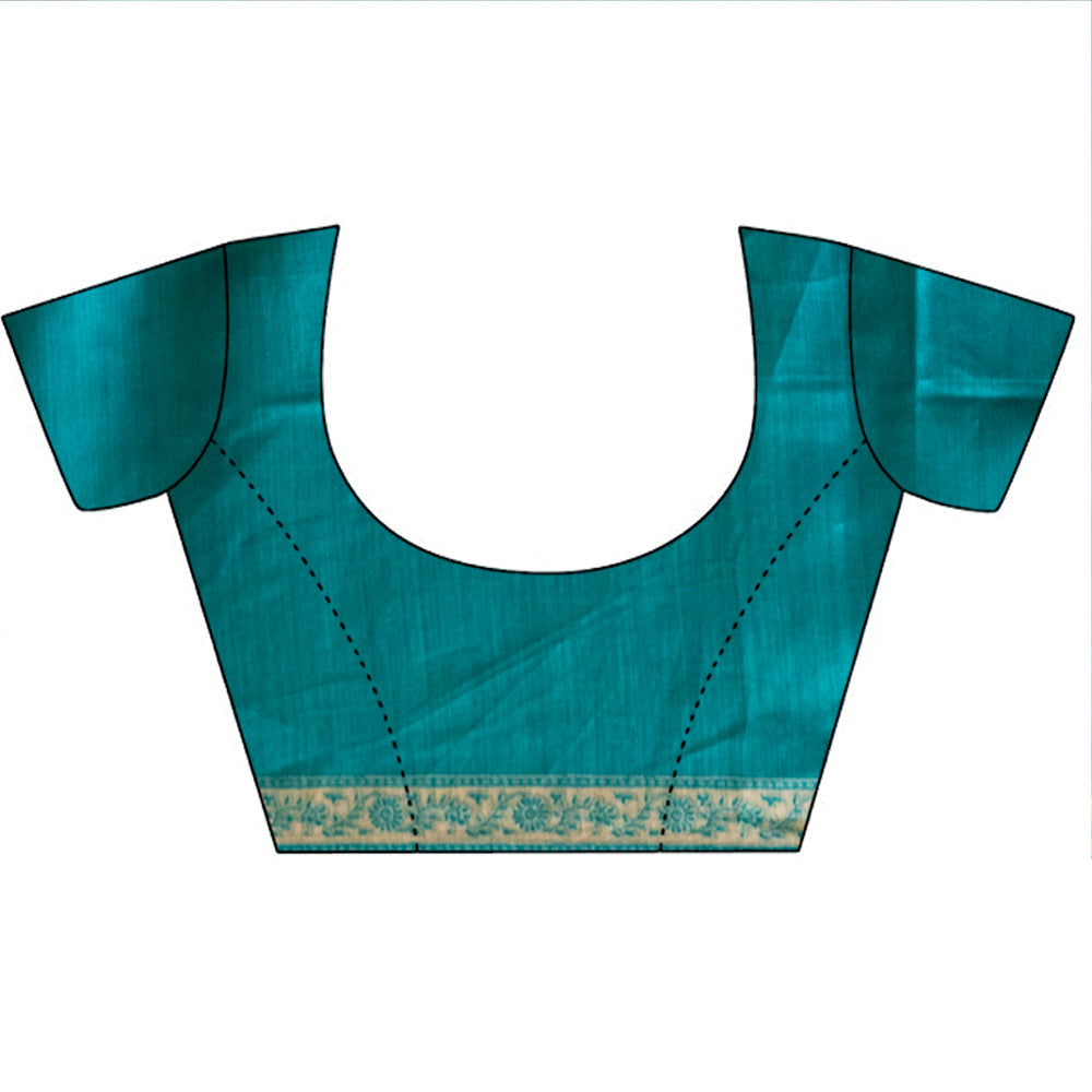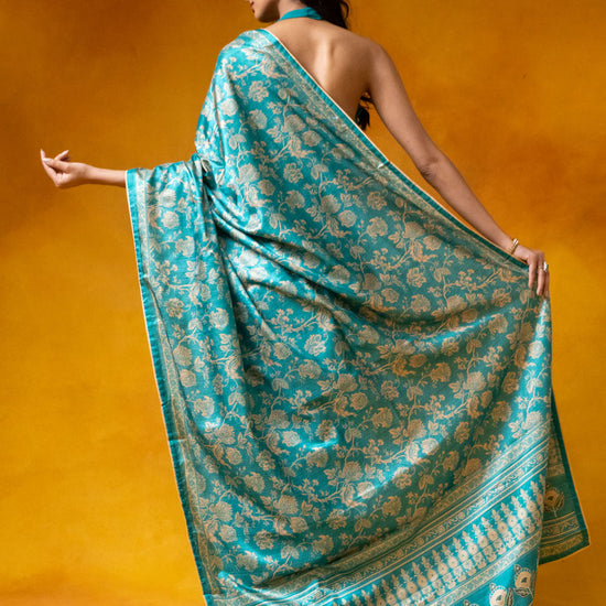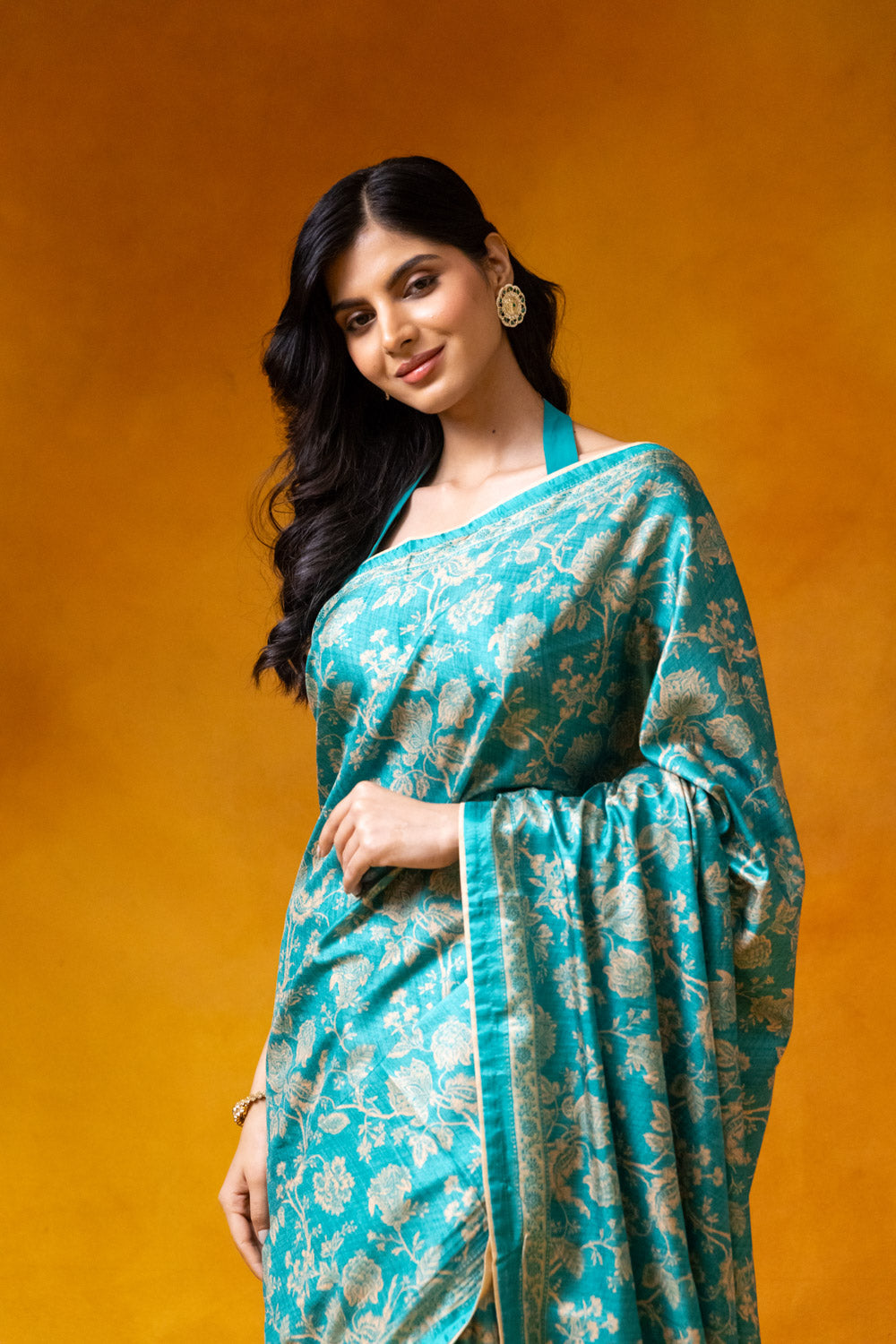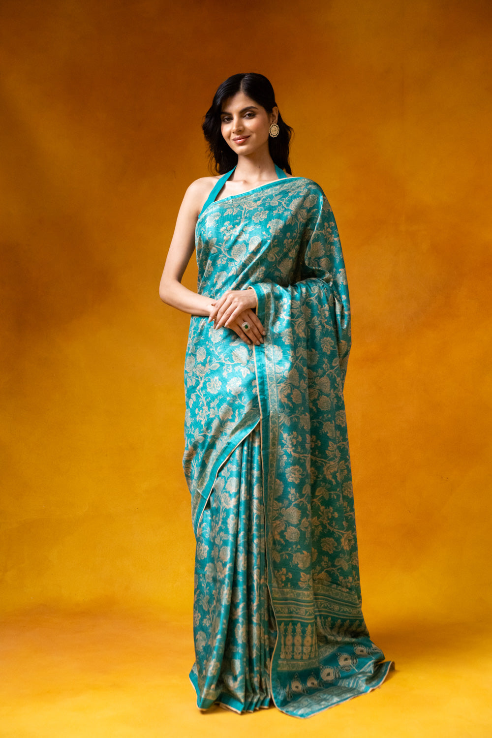Panna Rama Cotton Floral Print Saree With Unstitched Blouse