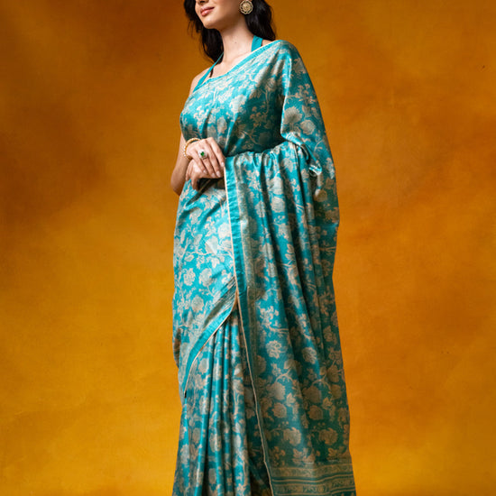 Rama Cotton Floral Print Saree With Unstitched Blouse
