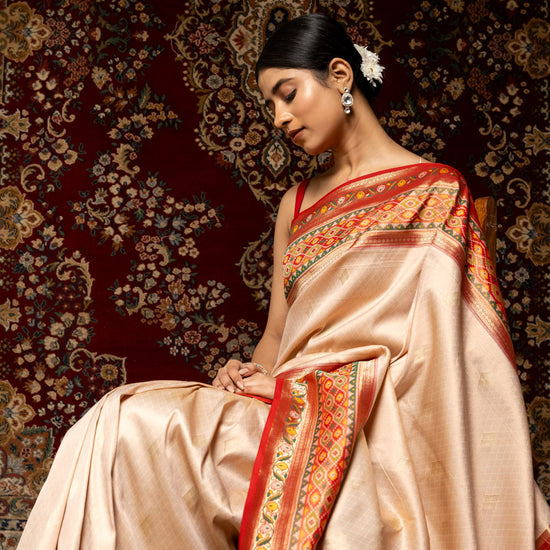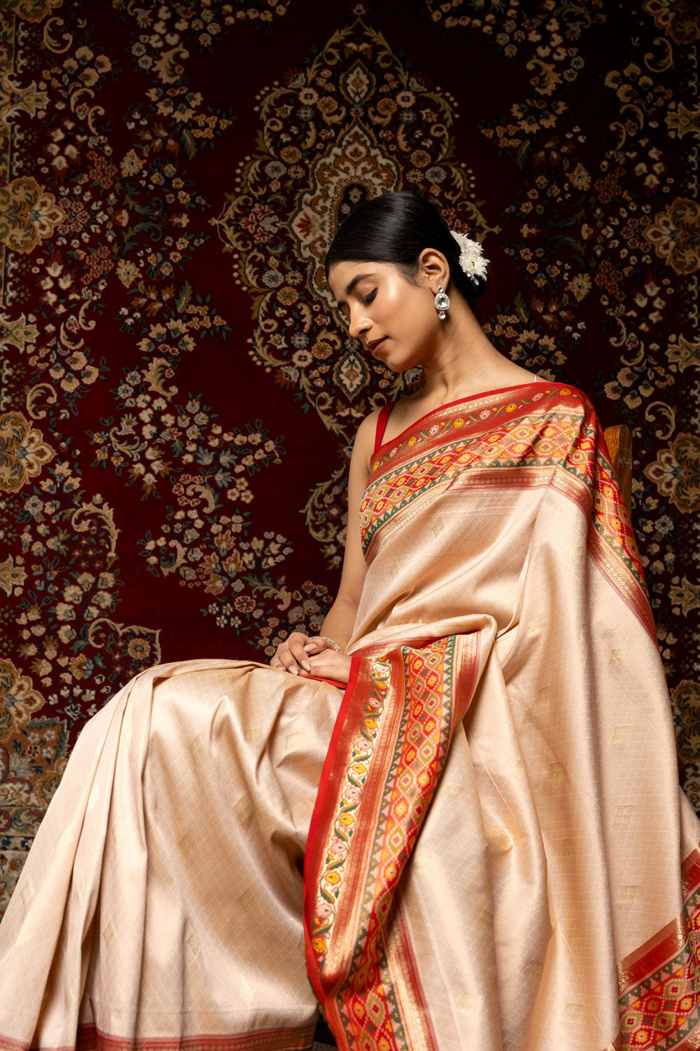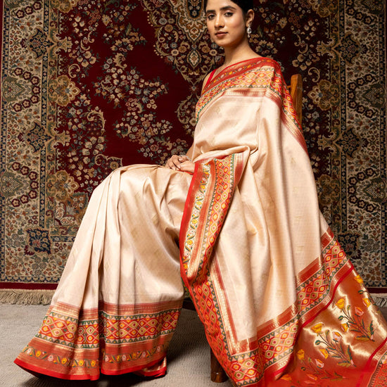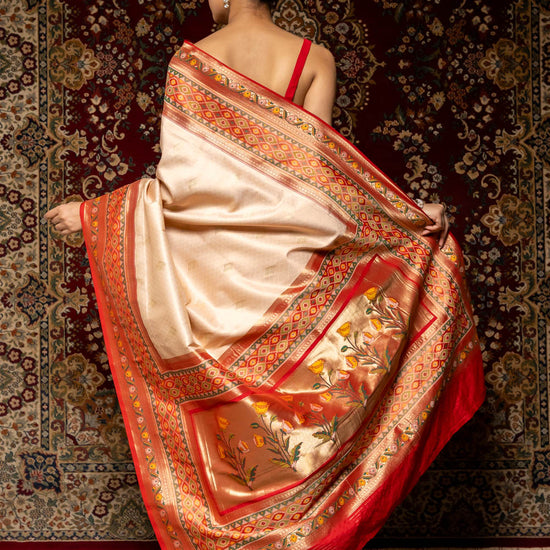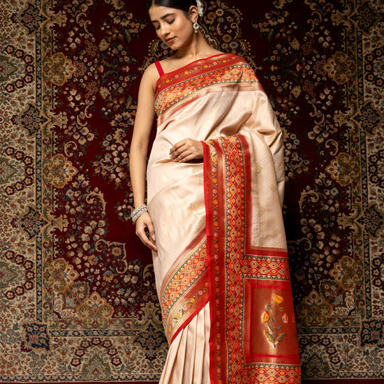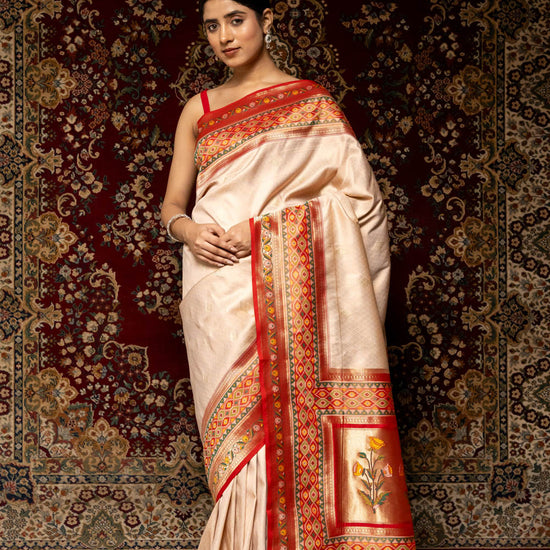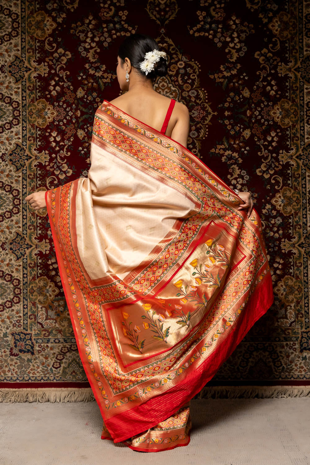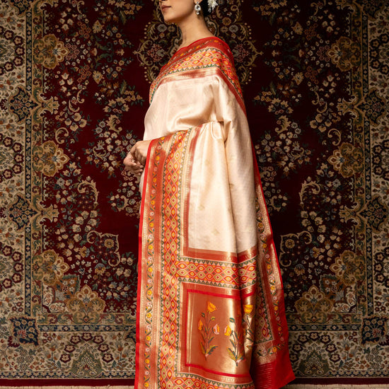 Panna Off White Red Banarasi Silk Woven Zari Saree With Unstitched Blouse