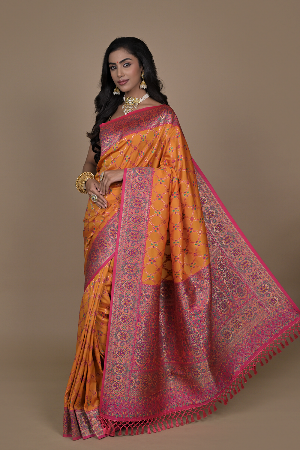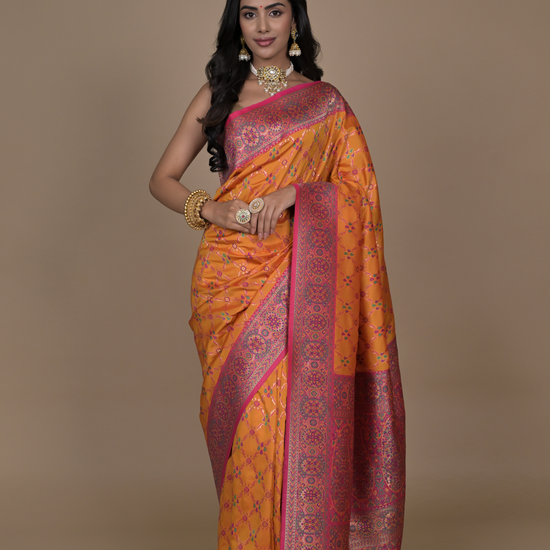 Panna Mustard Banarasi Woven Zari Banarasi Silk Designer Saree With Unstitched Blouse